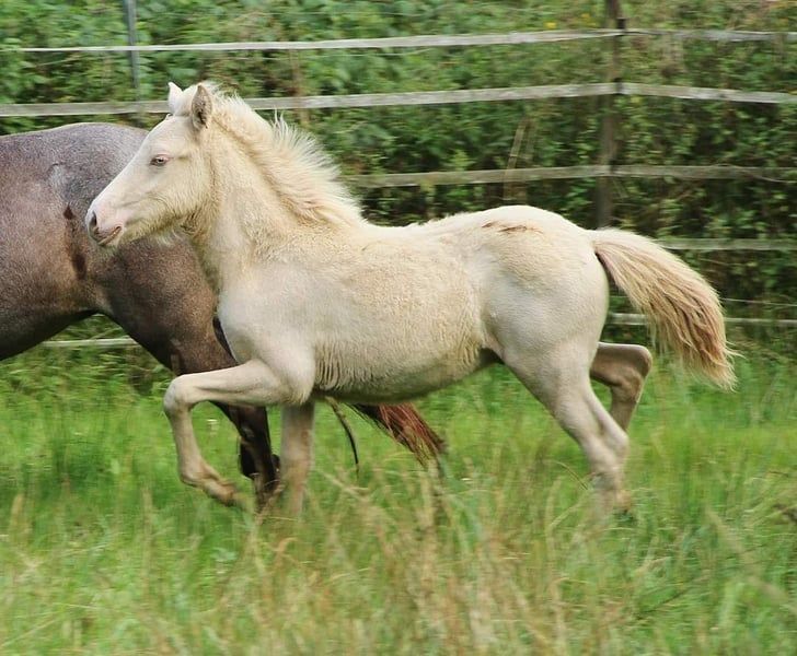 Zur Abgabe steht mein wunderschöner 2024 geborene Junghengst Fagurfifill. Er ist : - gesund, Ekzemfrei - geimpft - Halfterführig, Anbinden und Putzen gewöhnt. - Hufpflege- und Verladefromm - von Geburt an ein Charakterschatz - easy und vertrauensvoll - unartenfrei - gut sozialisiert - gut entwickelt - mit Junior Mineral versorgt - jetzt schon tolle lange Mähne - ausgeglichenes Temperament - klare gute raumgreifende Grundgänge mit schönen Bewegungen und Tempofähigkeit - immer wieder Tölt mindestens im Übergang und mehr - Pass als Fohlen gesichtet - volle Papiere mit sehr guter Abstammung - beide Hoden abgestiegen - Dna-Farbbestätigt Perlinoschimmel = reinerbig für Cremegen daher cemeweiß geboren mit blauen Augen Aufgrund von Reduktion zum Fohlenpreis an Bestplatz. Eine Kastration vor Ort mit Nachsorge kann jederzeit gegen Zahlung der Unkosten durchgeführt werden. Transport innerhalb Deutschland auf Anfrage. Ankaufsuntersuchung auf Wunsch jederzeit möglich. Befristete Unterbringung kann gegen Kostenerstattung abgesprochen werden. Ratenzahlung möglich solange er vor Ort bleibt, Unterbringungskosten fallen in dieser zeit zusätzlich zu den Raten an. Gerne kann Fagurfifill persönlich kennen gelernt werden. Es bietet sich hier die Möglichkeit zu sehr fairem günstigem Preis ein Taumpferd in Sonderfarbe zu erwerben. Welches später sowohl für Klein und Groß in Freizeit bis Sport, auch für Therapie und mehr seine Allround Eignung finden wird.