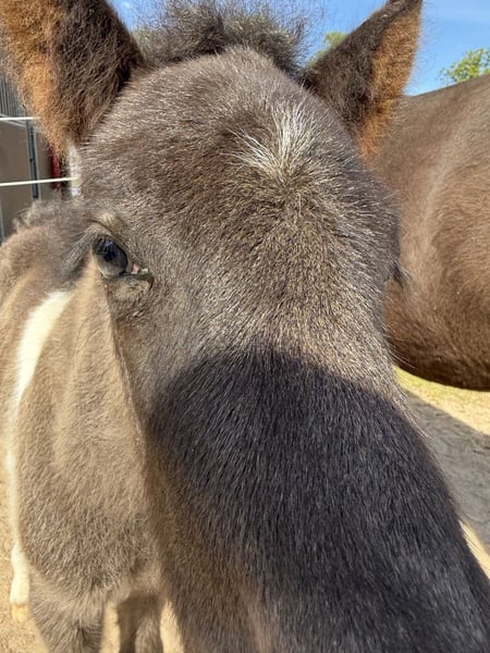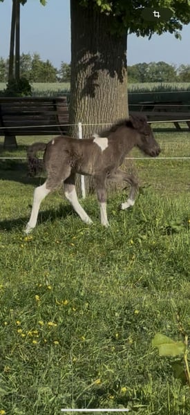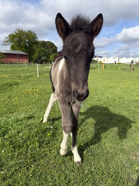 Skjóni vom Skógahof (*2025) Black pinto with a star and blue flecks in the eye Sire: Glæsir frá Hjardarholti (8.12 Young Horse FEIF) SS: Isak frá Bjorsabakka (8.61 as a four-gaited horse, 8.84 for conformation) Dam: Stjarna vom Skógahof (8.0 Young Horse FEIF) DS: Máni frá Hrafnkelsstödum (FIZO all gaits 8.0) Skjóni was born on April 30, 2025, and demonstrates a lot of speed variance and flow in all gaits. He is very people-oriented and not at all skittish. When free-running, he shows all gaits, especially a lot of tölt and a very secure and fast pace! He promises to be a great stallion candidate for leisure riding, as he is completely unflappable and relaxed (like his mother), with potential for competitions. Both parents have very long and thick manes. Anyone looking for a sweet, relaxed stallion with power will find exactly what they need in Skjóni. He can also stay with us for upbringing. The last pictures show his parents. Location: 49832 Thuine
