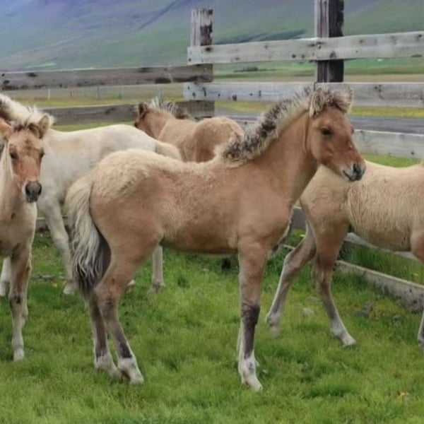 Nur an absoluten Bestplatz zu Verkaufen* Kein Notverkauf* Wenn alles passt, würde ich meinen schönen Braunfalbhengst Salvar-Dor fra Haukagíli in allerbeste Hände geben. Salli ist 2024 auf Island geboren und wurde als Fohlen importiert. Er steht seit Anfang 2025 in Österreich. Gerne darf er zur weiteren Aufzucht in der aktuellen Herde (in AT, Rauris) bleiben. Hengstpotential hat der große Kerl auf jeden Fall. Die Mama Gáska frá Haukagili hat Sægrímur frá Bergi als Vater, der wiederum vom Nachkommenspreisträger Sær frá Bakkakoti stammt. Und Gáskas Mutter ist nach dem Nachkommenspreisträger Gári frá Auðsholtshjáleigu. Sein Vater ist Kveikur frá Byrgisskarđi, welcher mit seinen 1,51 ein wahrer Riese ist. Dann hat Salli noch väterlicherseits Knár frá Ytra-Vallholti mit Nachkommenspreis dazu. Also alles Spitzenpferde in der Abstammung. (Blup von 110) Gáska, (144) seine Mutter, wurde letzten Winter auch leicht angearbeitet, noch nicht vom Sattel da sie ja tragend war, aber Jungpferde-ABC, Bodenarbeit und Fahren vom Boden. Hat sie alles mega gut mitgemacht, also charakterlich auch einwandfrei. Ein absolutes Spaßpferd, wach und aufmerksam, lernwillig und trotzdem ruhig und ausgeglichen. DNA-Tests für Salvar-Dor: Er ist reinerbig Rappe und reinerbig Falbe, d.h. seine Nachkommen würden immer entweder Mausfalben oder Braunfalben werden, keine einfarbigen Grundfarben. Der kleine Mann ist sehr verschmust, unerschrocken sowie neugierig und hat altersgemäß eine bedingt Ausbildung (anfänge Fohlen ABC). Auf den letzten beiden Bildern sind die Eltern zu sehen. (Graufalbe: Mutter, Braunfalbe: Vater)