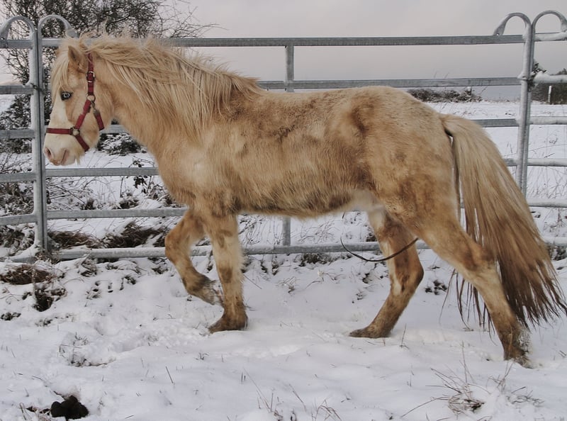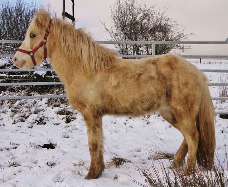 Mambo ist 2021 geboren, gesund, Ekzemfrei, regelmäßig Entwurmt, Geimpft und bis dato bestens sozialisiert in einer altersgemischten Hengstherde aufgewachsen. Er zeigt sich bei mir sehr sozial und bis dato mit wenig Hengstmanier. Leider ist er ein Kryptorchide, ist daher nicht Zuchttauglich und benötigt eine Kastration in der Klinik. Da diese etwas teurer ist als eine Standartkastration wird er für einen günstigen Preis abgegeben. Mambo bringt alles mit um ein Sportpferd oder gehobenes Freizeitpferd zu werden. Charakterlich absolut freundlich, brav und unkompliziert. Entsprechend im Jungpferdemäßigen Umgang respektvoll, unartenfrei und motiviert. Hufpflege- wie auch Verlade-fromm. Bis dato noch nicht angearbeitet da wir noch auf einen Termin zum Zähne machen warten und erst dannach mit Beritt beginnen werden. Fünfgangveranlagt mit sehr guten Grundgängen und auch immer wieder Tölt mindestens im Übergang und mehr. Seine Gänge sind raumgreifend mit schönen Bewegungen, Tempofähigkeit und viel Potential zum Fördern. Er hat stehts eine gute Aufrichtung und zeigt sich Lauffreudig mit viel Will to Please, ist dabei aber stehts ausgeglichen vom Temperament mit klarem Kopf und hört immer zu. Durch seine gute Größe von aktuell ca. 141 Stm mit sportlichem Gebäude und gutem Fundament bringt er alles mit um für klein und groß ein Reitpferd zu werden. Sein Vater ist in 2025 auf der WM gestartet und überzeugt mit Elitefizo und bester Abstammung auf Kandís frá Litlalandi, Kvistur frá Skagaströnd, Glampi frá Vatnsleysu etc. Seine Mutter ist eine Stutbuch 1 geführte Hróður frá Refsstöðum Tochter und überzeugt mit ihrer qualitativen Nachzucht auf ganzer Linie. Mambo selbst bringt noch den Eyecatcher Look eines Palominohelmschecken mit blauen Augen mit. Mit passendem Beritt und Training kann Mambo ein gutes Sportpferd werden aber auch genauso gut als gehobenes Freizeitpferd glänzen. Gerne kann er angeschaut werden. Eine Aku kann auf Wunsch veranlasst werden. Für einen Transport kann eine Spedition vermittelt werden. Die Fotos sind aktuell, leider typisch helles Pferd weiß er genau wie er sich jetzt im Winter so einsauen kann das selbst Putzen zwecklos ist. Bei echtem Interesse freue ich mich auf Kontakt.