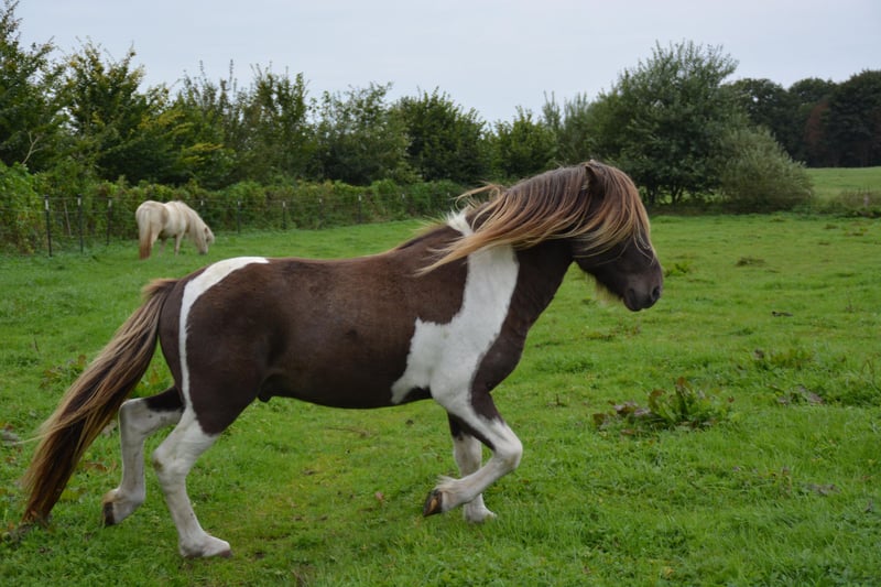 Neisti, son of the elite mare Njala by Seimur & Salómon frá Rödli. He is something very special and should, if possible, be presented as a 5 year old ridden by Fizo. He is an elegant, sporty young stallion with lots of movement. He has 5 gaits, whereby the tölt stands out in particular. He is currently standing in our large pastures with the young stallions aged 1-4 and can be viewed at any time. He will reach a final height of approximately 1.44 m. He is also the grandson of Kjarkur by Seimur. His character and nature are very friendly, he is very sociable with everyone and should be worked from spring 2025. His color is brown pinto, his coat is also not without! The young stallions are with us, next to the young mares. He can be used as a breeding stallion, but also for sport and leisure! More details via PN.