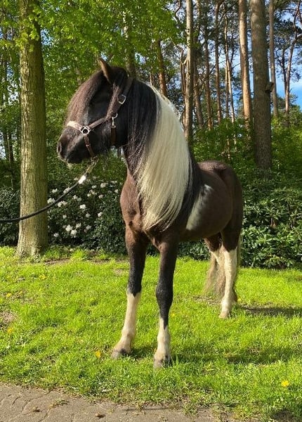 Árvakur of Streekermoor DE2020110946 Purebred Rapp Check Gelding (100% pinto offspring) with star and snip Impressive mane and tail, a true eye-catcher with pinto color guarantee Árvakur is an elegant, expressive breeding stallion born in 2020, impressing with his abundant mane and tail, striking markings, and harmonious overall appearance. As a purebred pinto stallion (TOTO), he is especially interesting for color breeding. Beyond his appearance, Árvakur also impresses under saddle: he has a very smooth, absolutely rhythmical tölt that is easy to collect. This pronounced tölt ability reliably passes to his offspring. Árvakur combines tölt quality, character, and charisma with an impeccable, brave, and consistently interested temperament. Born in Germany, Árvakur boasts a top-tier pedigree: His sire, Herkúles frá Ragnheiðarstöðum, from the proven line of Álfur frá Selfossi and Orri frá Þúfu í Landeyjum, is known for quality and gait. His damline also impresses with performance-tested and breeding-strong lines, including Pristur frá Feti, with numerous proven offspring in sport and breeding. Árvakur himself was licensed as an elite stallion in 2023 at the age of three. The first foal crop in 2025 is already exciting with exceptional tölt reliability, light-footed movements with good balance, and distinctive coloring. Breeding conditions: Árvakur covers by arrangement at the Island Pony Farm Streekermoor, on pasture and by hand. Requirements for mares: * current uterine swab test * CM test Stud fee: €800 Pasture fee: €6 per day