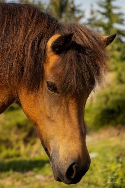 Mynd ist 2016 geboren und eine sehr zutrauliche Stute. Sie hat ein Stockmaß von 1,40-1,42 und bringt ein stabiles Fundament mit. Bevor ihr Leben als Zuchtstute anfing, war sie Reitpferd. Sie wurde dabei hauptsächlich von einer erfahrenen Jugendlichen für Geländeritte (Wanderritte etc.) genutzt und durfte aber auch z.B. Teilbereiche eines Reitabzeichen Bronze oder bei einem Hestadagar mitmachen. Bevor sie in unserem Besitz war, war Mynd kurzweilig in einer Reitschule. Dort wurde sie unter Aufsicht auch von jüngeren, erfahrenen Reitern geritten. Insgesamt ist sie jedoch eher ein Pferd für einen erfahreneren Reiter. Sie hatte 2024 ihr erstes Fohlen und ist aktuell bedeckt von Logi frá Púfum. Ihr erstes Fohlen überzeugte von Anfang an durch einen einwandfreien, unkomplizierten Charakter und schickem Gebäude mit guter Größe.