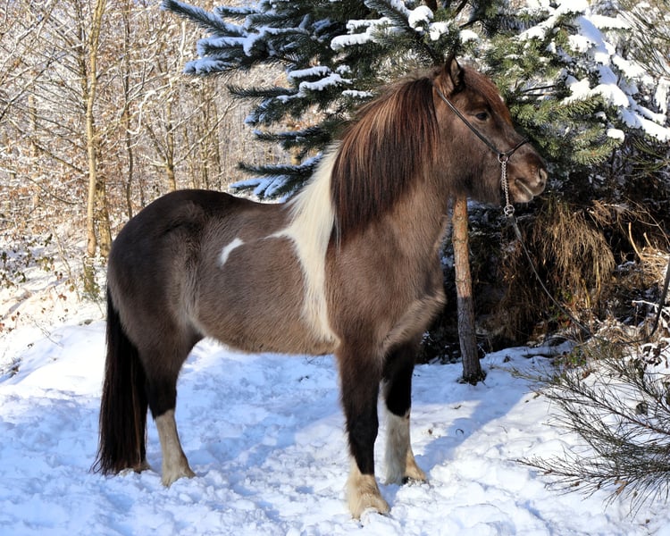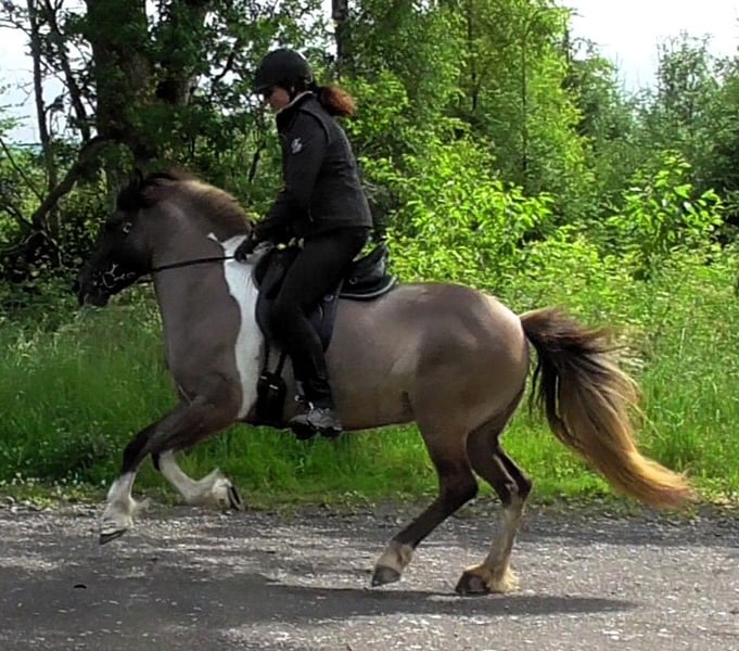 Hnísa is a large, beautiful mouse-colored pinto mare with a great character and good gaits, always friendly towards people. We liked Hnísa from the very beginning, which is why we have bred two foals with her, both of which turned out wonderfully. After weaning the last foal, we started her training in spring '24. Hnísa is familiar with groundwork, lunging, and double lunging; she is always eager and very well-behaved when out in the field. In the riding arena, she is uncomplicated and always strives to please the rider. All in all, she is a real fun horse, which we currently see in the advanced leisure riding sector. With further training, she will also make a good impression in sports. Further information and many pictures from her first day of life can be found on our homepage at www.islandpferdehof-obersolbach.de/fotogalerie/hnísa. If you are interested, we look forward to your call.