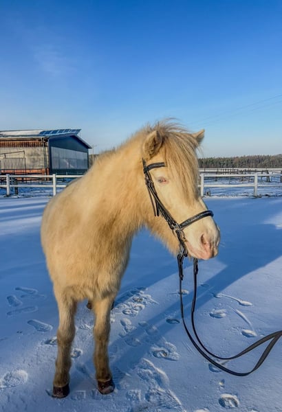 For Sale: Eye-Catching Icelandic Mare with Lots of Charisma We are offering a beautiful, sweet Icelandic mare born in 2015. She is a Perlino, which gives her a unique and striking appearance. With a height of 138 cm (approximately 14.1 hh), she is suitable for larger riders as well. Fröken impresses with her smooth gait and friendly nature. She is solidly trained and suitable for leisure riders, as well as for participation in recreational riding or, with further training, for competitive sport. She has been covered once and foaled a very good-moving Palomino colt in 2024, who is quite eye-catching in color. Skàti was awarded at the foal show. Due to lack of time, Fröken is available for sale. Additional photos, including under saddle, can be sent upon request. If you are interested or have further questions, please feel free to contact me. Viewing and trial riding (€30.00 deposit) are possible by arrangement.