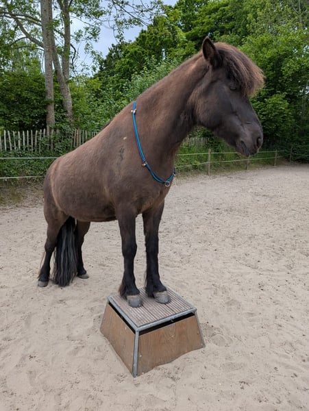 We are, with a heavy heart, seeking a new home for our Icelandic mare. She would be suitable for breeding, as she loves foals and would likely make a good mother. She has beautiful movement, a good pedigree (Ofsi vom Hrafnsholt, Sólon frá Hóli), and was awarded a premium as a foal. Our mare is 10 years old, healthy, and very social. She has been regularly dewormed, vaccinated, treated by a physiotherapist, and her teeth have been checked. She has comprehensive ground training: classical work in hand (all lateral movements in walk, leg-yield in trot), work on the long rein is already quite good, and she has begun liberty and circus training. Our mare is refined and very sensitive. She enjoys her work and also loves going for walks. However, she has experienced trauma and is not suitable as a riding horse. We have invested a lot of time, love, and training, but have come to the conclusion that riding her is not advisable. We are looking for a 5-star home, ideally with a pony or Icelandic horse community, preferably with an interest in groundwork and natural horsemanship. Please include a detailed introduction in your inquiry. We are happy to provide further information by phone.