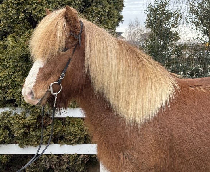 Lotning frá Miðsitju Mare, 1.39 m groß Fuchs mit Blesse und viel Langhaar viergängig geritten *2014 auf IS registriert AKU vorhanden inklusive Röntgenaufnahmen ✅ beschlagen, entwurmt ✅ V: Blær frá Miðsitju 8,64 (Ext 8,29 / Re 8,87)‼️ VV: Arður frá Brautarholti 8,49 (Ext 8,34 / Re 8,60)‼️ M: Lísa frá Kjartansstödum 8,16 (Ext 7,89 / Re 8,35)‼️ MV: Kjarval frá Sauðarkróki 8,32 (Ext 7,94 / Re 8,70)‼️ Lotning ist optisch ein echtes Püppchen. Deshalb trägt sie bei uns auch den Spitznamen „Püppi“. Im Umgang und in der Herde zeigt sie sich jedoch keineswegs zierlich – sie ist in allem äußerst unkompliziert. Ihre Abstammung liest sich für Kenner wie ein Bilderbuch! Eine Tochter des außergewöhnlichen Blær frá Miðsitju, mit durchgehend geprüfter Ahnentafel, in der zahlreiche Einzelnoten von 9,5 und 9 bei den Reiteigenschaften zu finden sind. Das macht sie auch für die Zucht äußerst interessant. Unter dem Sattel zeigt die schöne Stute ein sehr angenehmes Temperament, mit vier klar abgegrenzten Gangarten und großem Willen, mit dem Reiter zu arbeiten. Sie ist sehr gut ausgebildet und besticht durch ihren ausgeglichenen Charakter, den alle Nachkommen von Blær mitbringen. Sie wird dem zukünftigen Besitzer viel Freude bereiten – ganz gleich, in welchem Bereich. Ob als tolles Freizeitpferd, Partner für den Einstieg in den Sport oder als Zuchtstute mit Top-Ahnentafel: Lotning ist das Allround-Paket. Aufgrund ihrer unerschrockenen, ruhigen Art eignet sie sich auch bestens für weniger erfahrene Reiter, Jugendliche oder Kinder. In neuer Umgebung und bei neuen Situationen zeigt sie sich absolut unbeeindruckt und überzeugt durch ihre Souveränität. Sie ist ein 100%iges Spaßpferd für die ganze Familie oder den ambitionierten Freizeitreiter. Ihre Gänge sind deutlich abgegrenzt, Tölt leicht zu reiten und sehr bequem im Sitz. Sie ist gut ausgebildet und bringt mit ihren 12 Jahren viel Erfahrung als Reitpferd mit. Wer die schöne Lotning kennenlernen und testen möchte, kann dies nach Absprache gerne bei uns in A-5221 Lochen am See tun.