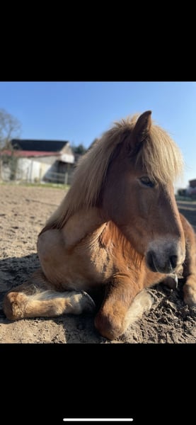 I am offering my beautiful mare Soka for sale. She is a very sweet and attractive chestnut mare with a light mane. Soka is 13 years old and has been ridden solely for leisure purposes by me, mostly in the field. She arrived from Iceland in autumn 2020 and has been with me ever since. Soka has all five gaits. Her favorite gait is the tölt. She is very comfortable to ride and makes riding a lot of fun. She is not suitable for beginners, as she is a very motivated and energetic horse with a moderate temperament. She is always easy to control. She has no fear of trekkers or similar, but she sometimes finds stones a bit spooky. She is being offered only due to my pregnancy, so I prioritize a good home over price. Unfortunately, Soka has developed sweet itch in recent years, which is well managed with a fly sheet.