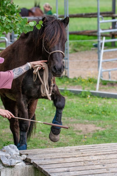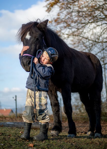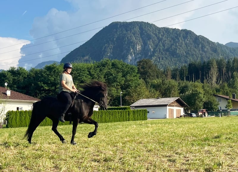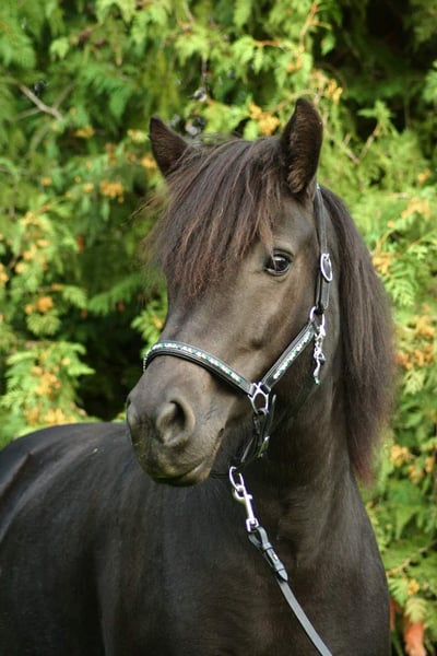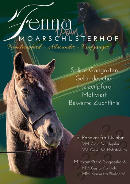 We have the beautiful black mare Fenna from Moarschusterhof on consignment. She is 13 years old, has a height of 143 cm and is ideal for leisure riding, possibly also for competitions or breeding. She impresses with her gentle nature and reliability. Ideal for riders looking for a loyal and loving horse. More information about Fenna: Fenna is looking for an Icelandic horse connoisseur, she has really great basic gaits, an exceptional walk, a very good rhythmic trot, a good canter for a five-gaited horse and she also cuts a fine figure in the arena. Her tölt is a little out of sync, but with good and correct training she is easy to ride in tölt. Her pass still needs some stability and speed but she has very good potential there! Under saddle she is very motivated, can be sensitive and can tense up quickly if you are an energetic rider but can become very fine if you pay attention to her, give her time and have clear but fair instructions. Fenna is safe on the road, is farrier- (wears irons) and loading-friendly, is confident on cross-country, in a group as well as alone, knows dogs. However, she can sometimes be frightened by a noise in the bush. She can be regulated at any speed with the seat at any time. She is totally sweet with children and takes good care of them! She is very friendly and bubbles to greet you every morning. She doesn't go through, she doesn't buck, she doesn't climb, she doesn't break away. However, a riding school or a riding stable would not be the right thing for her, Fenna has a good basic speed and a good temperament, too much pressure frightens her and she quickly becomes sensitive and tense. No beginners or fearful riders. Weight limit: max. 85 kg. Fenna needs a sensitive, calm but determined rider who gives her a voice, pays attention to her needs, understands her and gives her time, then she gives 110% and is always fully involved. Fenna is high ranking and also shows it when new horses approach her too quickly, a cold introduction is not advisable with Fenna, give her time to find her way into the new herd, but every horse belongs in a herd. Fenna should not be kept in a pure box without social contact. Fenna's pedigree is impressive, having Gáski and Gustur ( frá Hóli ) as grandfathers (Gáski even twice) is something very special, and names like Kjarval frá Saudárkróki and Hrafn frá Holtsmúla are not unknown in the pedigree of Icelandic horses. The old Gaedingar. So we could also imagine Fenna for breeding, she was awarded as a premium foal at the material test "Fohlenreise Bayern" 2011. I have attached her judge's decision. We would like Fenna to find a home where she is loved and challenged. With Fenna you have a mare that would normally be in the five-figure range, but Fenna had a deer attack two years ago and is therefore being sold for far less than she is worth. So the way she is kept needs to be adapted. (No grass paddock) New x-rays can be organized for a fee. She also has two years of training to catch up on. She is now fully resilient, has no other known health problems, no eczema, no cough. Videos and pictures are in progress and will follow shortly. Fenna is looking forward to your visit