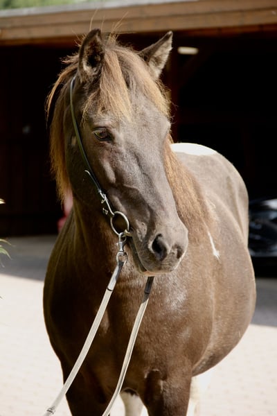 Undrun frá Fossi *2010 1,45m V: Sporður frá Minni-Borg M: Evra frá Fossi Undrun ist eine freundliche unkomplizierte Stute mit angenehmem Temperament und taktklarem Sofatölt. Sie ist immer motiviert fleißig und passt das Tempo dem an, wie der Reiter es gern möchte. Sie ist also weder triebig, noch temperamentvoll. Undrun verfügt über eine klare Gangtrennung und ganz viel leicht zu reitenden sehr bequemen Tölt. Sie ist fünfgängig veranlagt, trabt und galoppiert auch sicher, bevorzugt aber definitiv den Tölt. Mit ihrer kräftigen Statur „vom alten Schlag“ deckt Undrun auch wunderbar größere Reiter problemlos ab. Da Undrun gut auf die treibenden Hilfen reagiert, ist sie nicht für ungeübte Reiter geeignet. Ein durchschnittlicher Freizeitreiter mit klarer Hilfengebung kommt aber gut mit ihr zurecht. Sie ist gut ausgebildet, hat eine immer gute Form und ist ansonsten auch einfach zu reiten. Leider hat Undrun leichtes Ekzem, welches mit einer Decke und etwas Pflege gut zu Händeln ist. Ein hochwertiger und gut angepasster Sattel kann gegen Aufpreis mit übernommen werden. Preiskategorie B: 5.000 - 10.000€ Von privat Standort 29614 Soltau Aufgrund von vermehrtem Reittourismus und um diesen den Pferden zu Liebe zu vermeiden, berechne ich eine Pauschale von 40€ pro Termin. Diese wird natürlich bei Kauf erstattet.