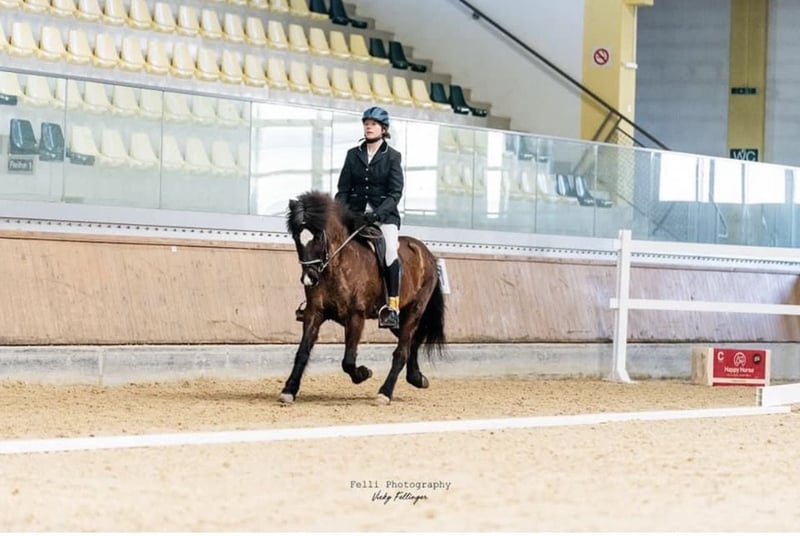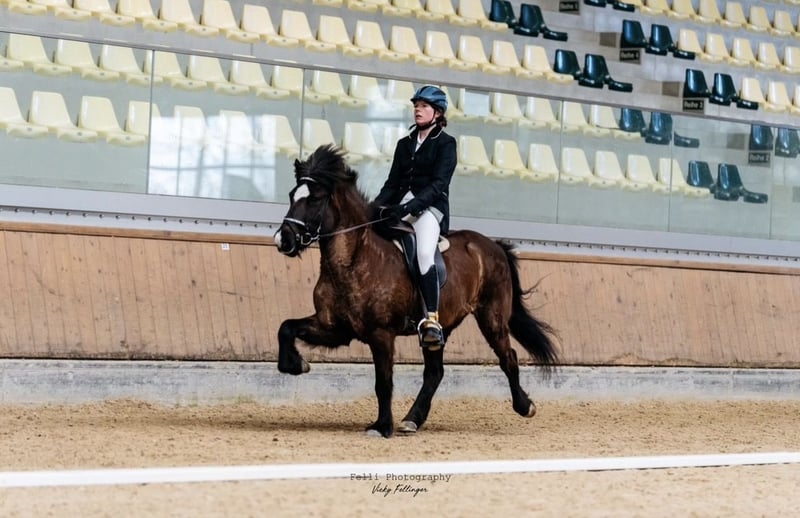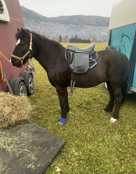 For sale is a mare born in 2009, directly imported from Iceland in 2020. She is an Icelandic horse with a solid coat color, star and snip, very attractive and expressive, standing at 140 cm (approx. 14.1 hh), but also suitable for taller riders. Currently, she is fully in training with excellent condition. The sale is due solely to lack of time caused by a job change. She is a typical one-person horse: she forms a close bond with her handler and works very reliably for them, but it takes some time for her to build trust. Under saddle, she is spirited and sensitive, therefore not suitable for beginners. She needs a calm, experienced rider with a lot of feel and without fear. In handling, ground work, and daily care, she is very sweet, polite, and uncomplicated, and can be easily led, groomed, and haltered by children. **Character & Training** • Four beautiful, distinct gaits, especially highlighting her fast tölt and canter • With proper encouragement, suitable for competition (former Landsmót participant) • Tölt up to high speed, very fun to ride • Loves lively rides • Well-trained in dressage • Excellent, well-jumped canter • Very skilled and gentle in groundwork, a professional in equicinetics • Enjoys and calmly runs as a lead horse • Well-behaved with veterinarian and farrier • Loads easily into any trailer, no spook • Not spooky, completely safe in traffic, no fear of cows, adapts quickly and well to new environments (e.g., orientation rides, competitions, etc.) **Breeding** • Has already foaled two healthy foals, with smooth conception, pregnancy, and delivery, all without complications **Health & Management** • Mild summer eczema, manageable with a fly sheet • Hay allergy • Feeding should consist of haylage or steamed hay • Prefers pasture turnout • With proper management, she is symptom-free and fully sound • Her allergy has been precisely tested, and she has been successfully desensitized for a year; continuation is possible • She is regularly vaccinated and dewormed, her teeth are checked annually, and she receives physiotherapy quarterly **Husbandry & Herd Compatibility** • Very easygoing within the herd • Compatible with both all-mare and mixed herds • Handles 24-hour hay/haylage feeding, pasture turnout, and portioned feeding well, and has spent a summer on the mountain pasture Due to her allergies, she is offered at a very favorable price. Price includes a suitable driving saddle and eczema sheets. **Important:** Priority is given to the right home over price. A loving, pferdegerechte (horse-friendly) environment with experience in handling sensitive horses is essential. Multiple trial rides are explicitly welcome. If you are interested or have further questions, I look forward to your message.