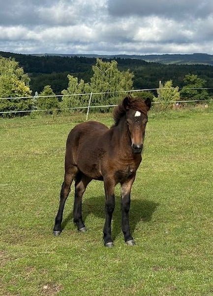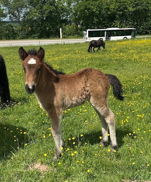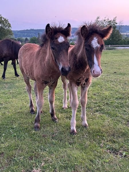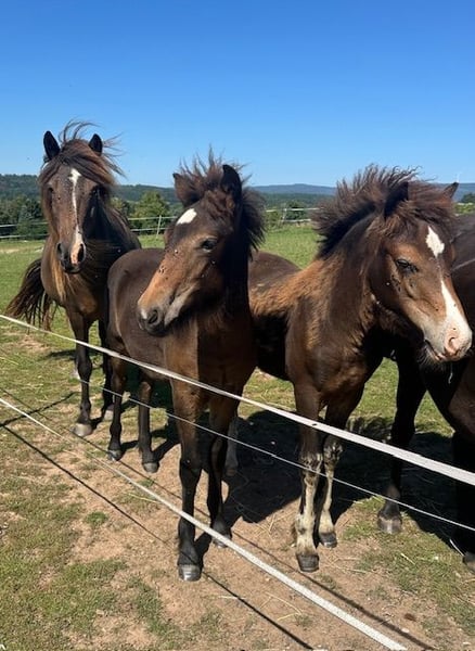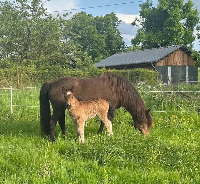 Esja ist im April 2025 geboren , zeigt sich 5-gängig mit viel Tölt. Sie ist regelmäßig entwurmt und geimpft. Die Jungstute hat das Halfter kennengelernt und ist bedingt halfterführig. Kennt Offenstall und Box und wächst in einer altersgemischten Isi-Stutenherde auf. Sie wird bestimmt wie ihre Geschwister ein tolles Reitpferd mit schönen Gängen und gutem Charakter. Ihre Geschwister haben ein Stockmaß um die 140cm Eltern und Geschwister stehen bei uns auf dem Hof und können gerne besichtigt werden. Vater: Eldur von den Amperauen . V V: Eitill fra Hala (siehe Foto, isabellhengst) Mutter : Tvista (Tyra fra Burdahol x Draumur vom Hofgut Retzenhöhe) siehe Foto Bei Interesse einfach melden. Nähere Angaben gerne über Whats app oder Telefon 0151 51806927 Beate Rose