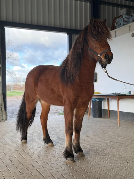 Beschreibung: Brella vom Kranichtal ist eine 3-jährige Islandpferdestute mit moderner Typausprägung und vielseitigem Entwicklungspotenzial. Als sicher veranlagte Naturtölterin bringt sie sehr gute Voraussetzungen für ihre weitere Förderung mit. Sie überzeugt durch ihr harmonisches Gesamtbild, gute Körperbalance und eine ansprechende Präsenz. Auch ihre interessante Abstammung unterstreicht ihre Qualität und macht sie sowohl für Sport als auch für Zucht und Freizeitbereich spannend. In Kombination mit ihrem klaren, kooperativen Wesen bietet sie für unterschiedliche Ansprüche eine vielversprechende Zukunftsperspektive. Exterieur: Großrahmige, langbeinige Stute mit harmonischen Proportionen und stabilem Fundament. Korrektes Gebäude mit guter Oberlinie und gut aufgesetztem Hals. Ausdrucksvoller, edler Kopf sowie eine schöne, dichte Mähne unterstreichen ihr modernes, sportlich ausgerichtetes Erscheinungsbild. Charakter: Sie präsentiert sich aufmerksam, neugierig und menschenbezogen. Als sehr feine und sensible Stute ist sie dem Menschen klar zugewandt, dabei jedoch angenehm unaufdringlich. Im Umgang zeigt sie sich freundlich, klar im Kopf und lernwillig, mit einer guten Arbeitseinstellung und einem ausgeglichenen Temperament. Gänge: Brella ist eine klar veranlagte Naturtölterin mit gutem Takt und natürlicher Balance. Der Tölt zeigt sich bereits locker mit gutem Raumgriff und beginnender Selbsthaltung. Schritt und Trab sind taktsicher und elastisch, der Galopp gut gesprungen und altersentsprechend ausbalanciert. Insgesamt bringt sie sehr gute gangliche Voraussetzungen mit, auch für eine spätere sportliche Förderung. Ausbildungsstand: Altersentsprechend aufgewachsen und gut sozialisiert. Sie kennt die grundlegenden Abläufe im täglichen Umgang, ist sicher im Führen und Putzen, kennt bereits das Laufband sowie das Longieren und ist bereit, schonend und sinnvoll weiter ausgebildet zu werden. Wer passt zu mir: Sie sucht einen fördernden Platz bei Reitern mit Gefühl und Geduld, die Freude daran haben, ein junges Pferd auszubilden und ihr Potenzial Schritt für Schritt zu entwickeln. Sowohl für ambitionierte Freizeitreiter als auch für sportlich orientierte Reiter oder Züchter ist sie eine spannende Perspektive. Vater: Merkur vom Maischeiderland ist ein bildschöner großer Fünfganghengst mit hoch-weiten Bewegungen. Er konnte bereits fünfjährig das Zuchtchampionat in Zachow gewinnen und überzeugte dann ein Jahr später noch mit seiner hohen FIZO, bei der er mit der Gesamtnote 8,34 (Gebäude 8,48 und Reiteigenschaften 8,24) Elite gesamt und in beiden Teilbereichen wurde. Sein liebevoller Charakter kombiniert mit seinem sehr guten Gebäude und seinem herausragenden Tölt, sieht man bereits in seinen Nachkommen. Merkur wurde sechsjährig von einem 13-jährigen Mädchen schon auf Turnier erfolgreich vorgestellt. Möchten Sie ein Pferd mit guten Gebäude, ausgeglichenem Charakter und viel Bewegung in allen fünf Gängen züchten? Dann ist Merkur genau der Richtige für Ihre Stute. Mutter: Ballerina vom Kranichtal ist eine aussergewöhnlich auffallend, bildschöne Zucht- und Sportstute mit ganz viel Langhaar. Ballerina hat bereits zwei hochbeurteilte Elitefohlen und wurde Ende 2023 von uns eingeritten. Sie ist ein absolutes Verlass pferd und hat sehr weich zu reitende Gänge. Besonders hervorzuheben ist ihr endlos Tölt, ob mit oder ohne Zügel und in verschiedenen Tempovarianzen. Pflegezustand: Brella ist wie alle von Kranichtal gezüchteten Pferde ekzemfrei und aus ekzemfreien Elternlinien.