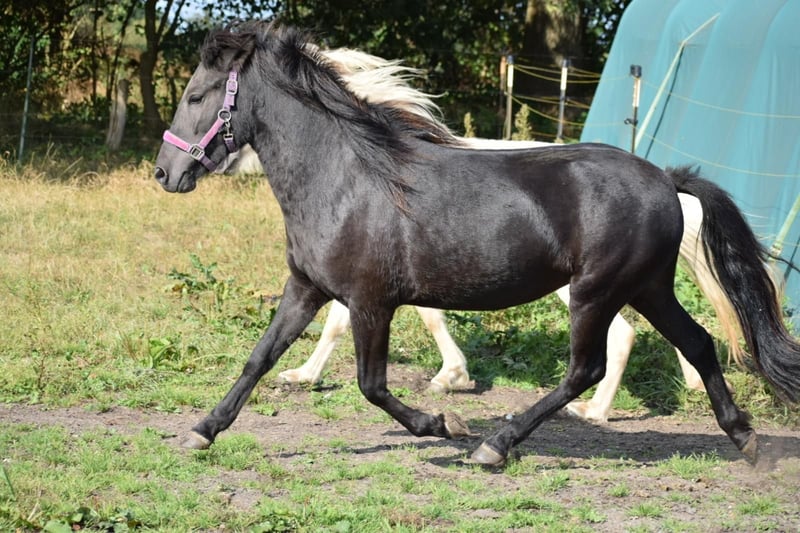 Glodis po Seimur, córka Glorii vom Schloss Judenau, brązowa pinto i elitarnego ogiera Stakkur po Seimur, gniada. Glodis jest bardzo uroczą młodą klaczą, ale już chce coś robić i szuka swojego człowieka! Jest bardzo chętna do nauki i ma bardzo uparty charakter, ale to nie jest złe. Ma 5 chodów, osiągnie ostateczną wysokość około 1,42 metra i już pokazuje bardzo ładne, wyraźnie oddzielone chody. Jest bardzo inteligentna i uważna! Glodis będzie świetnym koniem rekreacyjnym, ale może być również szkolony do terapii z dziećmi. Stoi ze swoimi kolegami w wieku od 1 do 4 lat na naszych dużych pastwiskach obok młodych ogierów i można ją oglądać w dowolnym momencie. Więcej szczegółów na PN.