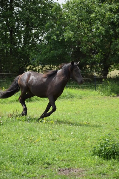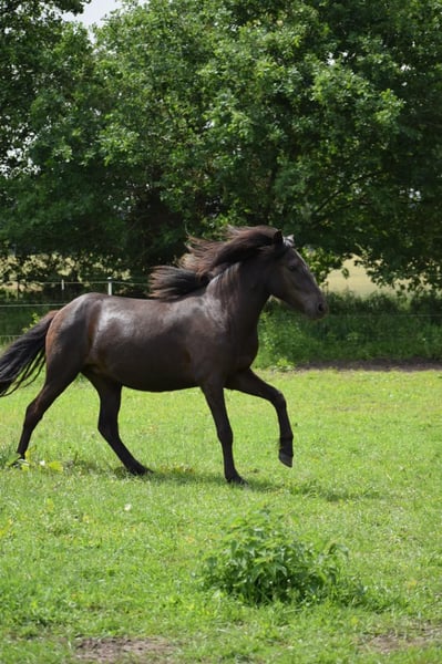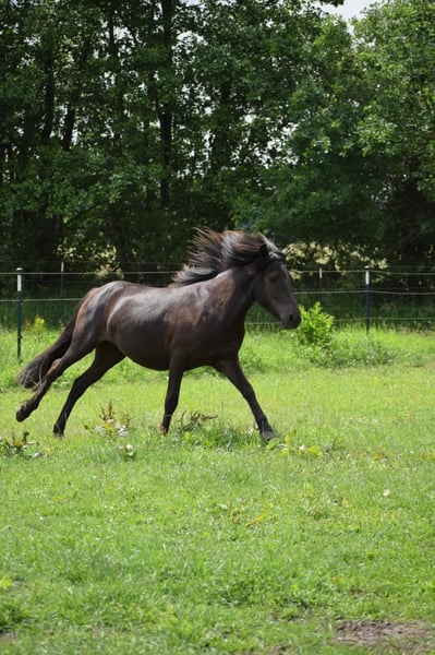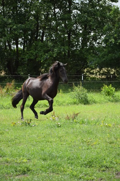 Glodis von Seimur, fille de Gloria vom Schloss Judenau, bai et de l'étalon d'élite, Stakkur von Seimur, bai. Glodis est une jeune jument très gentille, mais qui a déjà envie de faire quelque chose et qui cherche son homme ! Elle est très désireuse d'apprendre, son caractère est très volontaire, mais ce n'est pas grave. Elle a 5 allures, atteindra environ 1,42 m et montre déjà de très belles allures bien séparées. Elle est très intelligente et très attentive ! Glodis sera un excellent cheval de loisir, mais elle peut aussi être entraînée pour la thérapie avec les enfants. Elle se trouve avec ses collègues de 1 à 4 ans dans nos grands pâturages, à côté des jeunes étalons et peut être visitée à tout moment. Plus de détails par PN.