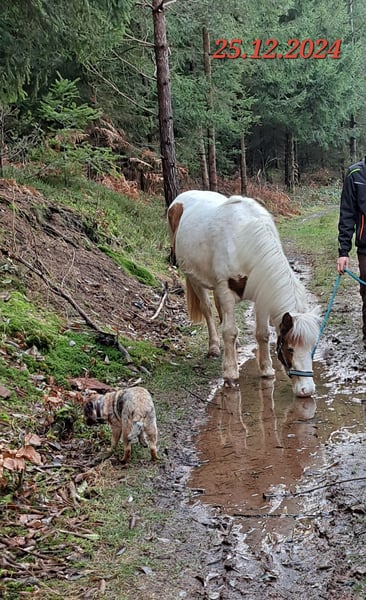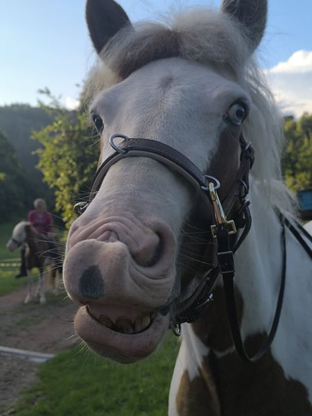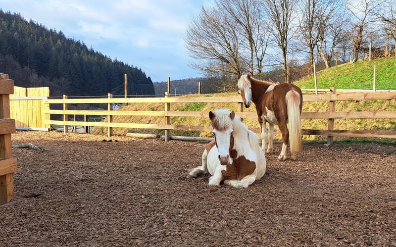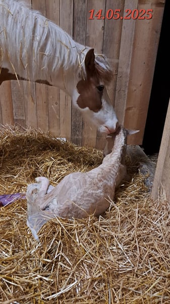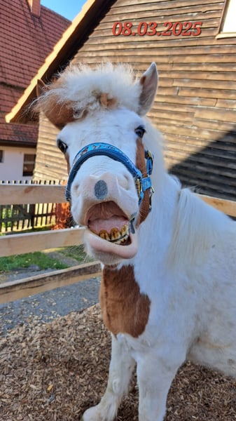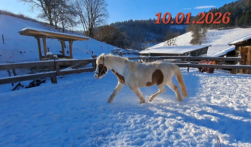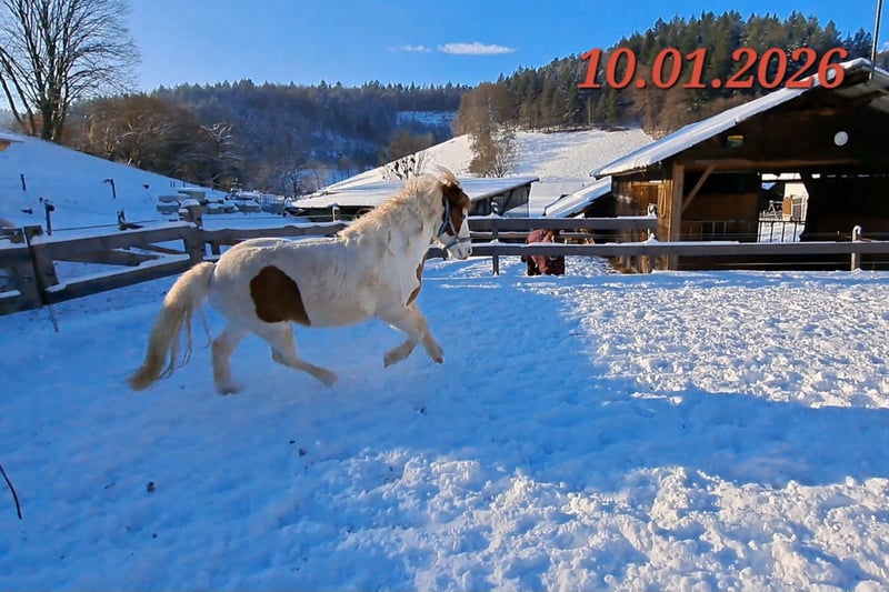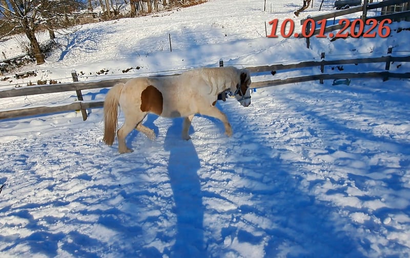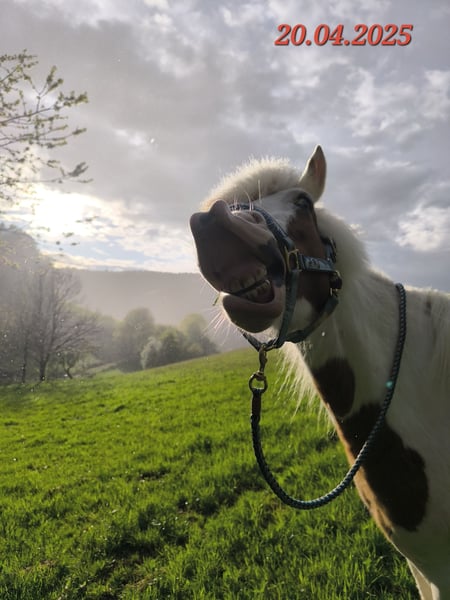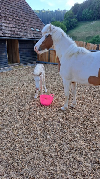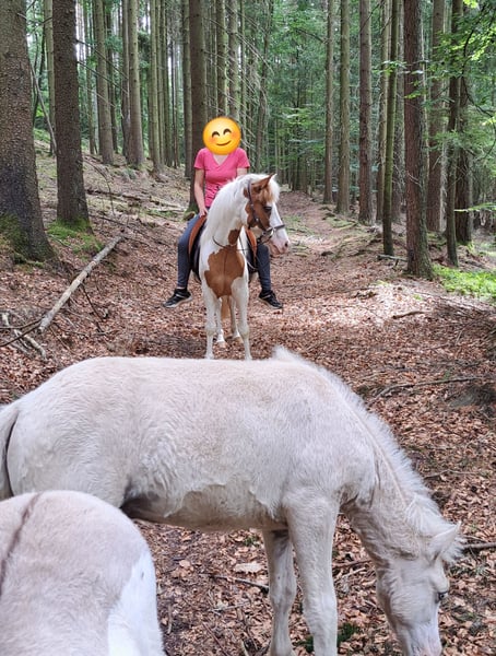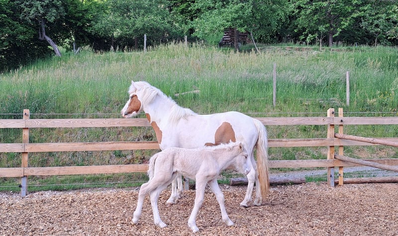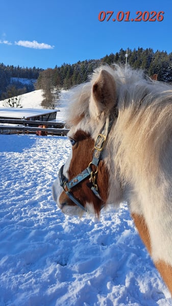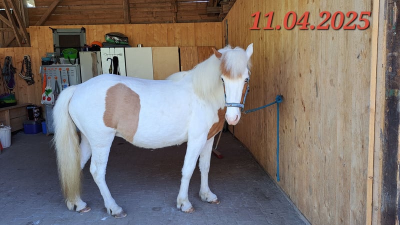 Gloría vom Holtdorftal ist eine knapp 5 jährige Isistute und momentan 1, 41 m groß. Sie kam im September 2024 mit einer weiteren Zuchtstute direkt vom Züchter zu mir. Sie war tragend für 2025. Sie ist dort auf großer Fläche im Herdenverband aufgewachsen und war nur halfterführig. Ich begann mit Ruhe die Jungpferdeausbildung und die Basisausbildung. Sie bekam am 14.05.2025 ein sehr großes, gut gebautes Hengstfohlen. Die Geburt hat sie ganz toll gemacht und man durfte auch von Anfang an an ihr Fohlen. Januar 2026 wurde das Fohlen abgesetzt, hat sie super souverän gemeistert. Sie wurde schonend von mir im Sommer 2025 gebisslos angeritten. Sie kennt in der Bodenarbeit die Arbeit am Kappzaum, an der Wassertrense, Longenarbeit, Equikinetik, Stangenarbeit. Sie kann am Kappzaum sowie an der Trense Schenkelweichen, Schulterherein. Travers sind wir langsam am beginnen. Kleine Zirkustricks machen ihr super viel Spaß. Freiarbeit macht sie gut und sehr fein. Unter dem Sattel geht sie super entspannt ins Gelände, auch wenn ihr Fohlen zuhause geblieben ist. Stute und Fohlen konnte man immer zum Arbeiten toll voneinander trennen. Wir gehen überwiegend alleine ins Gelände in allen Gangarten. In der Gruppe kann sie sehr gut hinten bleiben und lässt sich stets durch einen Pfiff anhalten auch wenn andere Pferde weiter galoppieren. Sie geht unter Flatterband durch, über Planen. Große Arbeitsmaschienen, Autos, Hunde, Wanderer war bis jetzt alles kein Problem. Unser Reitplatz ist sehr klein, da geht sie Schritt und Trab Bahnfiguren und Anfänge vom Seitwärts. Sie hat ganz tolle bequeme und flüssige Gangarten. Ich lege großen Wert auf eine korrekte klassische Ausbildung. Sie hat einen schönen raumgreifenden Trab mit schöner Halsung. Der Galopp hat eine schöne Aufwärtstendenz. Bei mehr Kraftzuwachs wird man diesen schön versammeln können. Der Schritt ist fleißig, aber nicht über Tempo und keine Passverschiebung. Auf der Wiese und unter dem Sattel kann sie schon schöne Strecken im Tölt halten. Sie steht bei mir im Winter in einem Offenstall mit Wiese und 24h Zugang zu Heu. Im Sommer 24 h auf großen Wiesen. Sie ist absolut freundlich zu allen Pferden egal ob in der Herde oder zu fremden Pferden. Sie ist regelmäßig entwurmt, geimpft und alle 6-8 Wochen werden die Hufe bearbeitet. Sie läuft hier barfuß und das auch gut im Gelände. Bei größeren Runden hat sie vorne Schuhe an. Hinten hat sie bis jetzt keinen Schutz gebraucht. 18 12.2025 wurden die Zähne gemacht. Protokoll vorhanden, Tierärztin super zufrieden. Ich habe sie als Zuchstute im Stutbuch 2 eintragen lassen. Sie ist ein sehr sensibles, arbeitswilliges Jungpferd. Du solltest dich mit Jungpferdeausbildung auskennen oder Unterstützung haben. Bei Interesse und Fragen sehr gerne per Whats App melden, 015757999782.