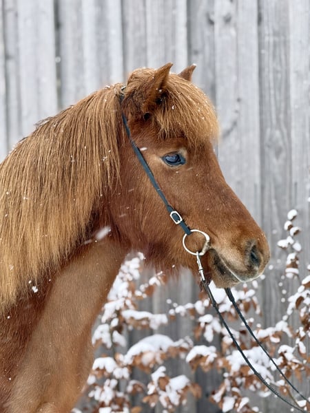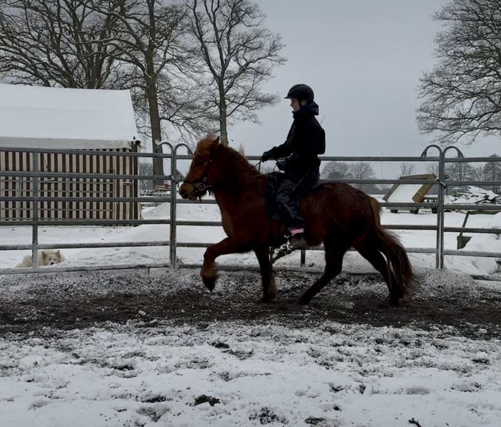 Nous vendons cette magnifique jument (d'origine allemande) pour le compte de son propriétaire. Née en 2020, elle a maintenant 6 ans. Elle a été monté de manière adaptée à son âge et en douceur par nos soins, et elle est prête à rejoindre une nouvelle famille. Tára convient aussi bien à des enfants avancés qu’à des adultes. Elle possède une belle allure régulière, avec une cadence très claire en Tölt et des allures de base très sûres. Grâce à sa conformation solide et sa stature robuste, elle convient parfaitement aux adultes. Elle a été montée en manège comme en extérieur, et nous la voyons continuer à évoluer dans le sport de loisir de haut niveau ou simplement pour le plaisir.