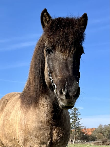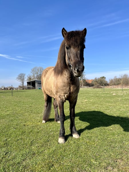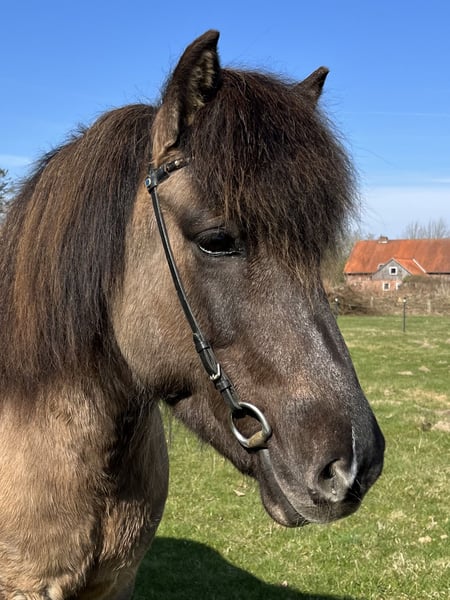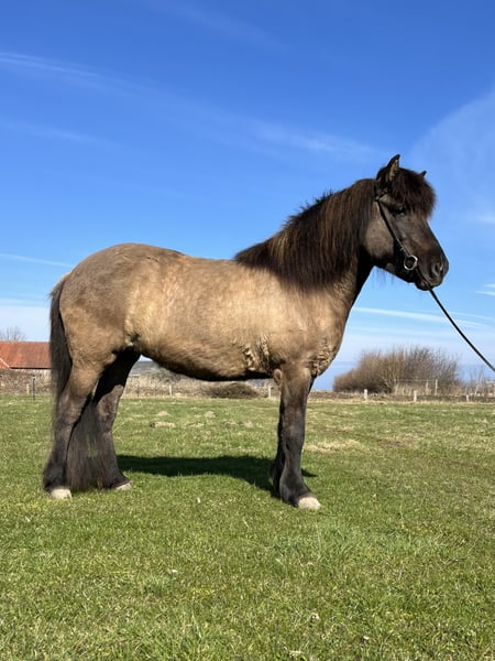 Andrá ist eine kompakte und kräftig gebaute Fünfgangstute, die definitiv im alten Typ steht und ihren Reiter sehr gut abdeckt. Sie ist die Vollschwester unserer Stammstute Ásta und die Tochter meines Lieblingspferdes Áfram. Diese Linie zeichnet sich durch Zuverlässigkeit, Nervenstärke und optimale Reiteigenschaften als Freizeitpferd aus. So tritt auch Ándrá als letztes Fohlen von Áfram in die Fußstapfen dieser Familie. Sie ist ein leichtrittiges Pferd, das angenehm und eher fein auf reiterliche Einwirkung reagiert. Sie hat ein gut mittleres Temperament und Freude am Laufen und Arbeiten, so dass man sie nicht treiben muss. Dabei sind ihre Gänge sehr schön zu sitzen, für ein Freizeitpferd optimal. Wie alle unsere Pferde wurde auch sie liebevoll, fachgerecht und vielseitig ausgebildet. Sie hat eine gute Gangtrennung und ganz viel natürliche Töltveranlagung. Derzeit trabt und töltet sie gleichermaßen gern. Der Trab ist fleißig, mit gutem Takt und gut zu sitzen. Der Tölt ist einfach zu reiten, wobei es manchmal einen Moment braucht, bis sie sich taktklar eingelaufen hat. Der Galopp ist eher flach und gelaufen, aber sie kann auf der Bahn und auch auf auf dem Zirkel galoppieren, aber auch im Gelände fleißig sein, wenn man Spaß daran hat. Dort ist sie sehr unerschrocken und sicher im Straßenverkehr und lässt sich super alleine ausreiten, aber auch in der Gruppe macht sie Spaß. Sie lässt sich auch dressurmäßig arbeiten und ist immer motiviert dabei, wobei ihre große Stärke das Geländereiten ist. Für einen Reiter, der Freude an längeren Ausritten oder sogar Wanderritten hat, wäre sie optimal. Natürlich lässt sie sich auch longieren und geht super als Handpferd mit. Wer ein fröhliches Pferd mit einer guten Arbeitseinstellung als Freizeitpferd sucht, ist bei Andrá genau richtig! Sie ist deutsch gezogen und ekzemfrei, wird im Offenstall mit anderen Pferden gehalten und verträgt Heu, Stroh, Silage und Weidegang.