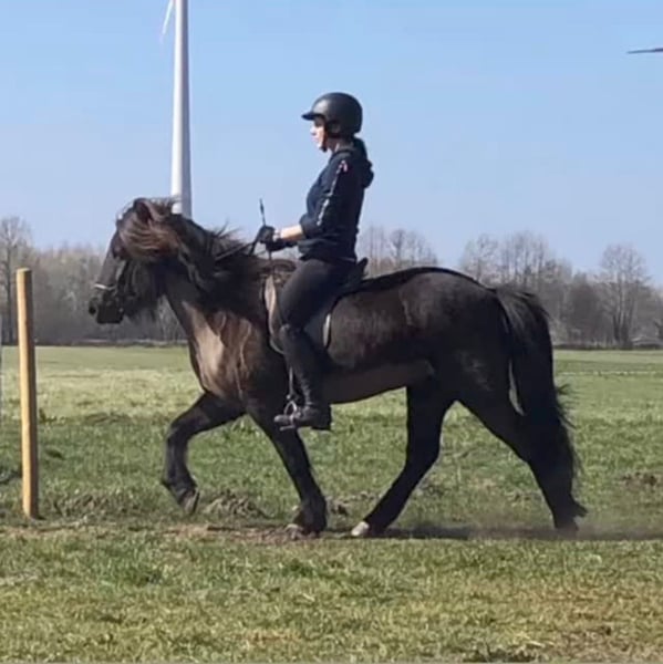 Large, 9-year-old Icelandic gelding for sale – luxury leisure horse For personal reasons, the owner has decided to give up riding, which is why I am offering this wonderful horse privately on her behalf. He has been living with me in Rastede/Loy in an open stable with paddock trail for over a year: - approx. 1.47 m tall with a solid build (original type) - imported from Iceland at the end of 2021, followed by professional training in Germany for a few months - five-gaited with natural tölt, all gaits easily accessible, pass not yet trained - comprehensive pre-purchase examination four years ago with no findings (X-rays and all documents available and can be provided) Rómur cannot be fully described in just a few words, but here is a brief profile for a first impression: - always diligent and motivated - good, moderate temperament that is always manageable - walks absolutely calmly and confidently alone in the terrain, but also in small and large groups at any position - social and friendly within the herd - can also stand calmly with mares - loads quietly and reliably - familiar with various oval tracks, arenas, indoor halls, trail rides (including water), and behaves politely and with enthusiasm everywhere - well-trained (e.g., voice commands for slowing down, even in the terrain) - knows basic ground work and is great at long-reining - absolutely well-behaved and calm in handling - suitable for children with some riding experience / not a beginner’s horse - regularly vaccinated, dewormed, and presented to the dentist - barefoot for nearly a year with very good hoof quality - healthy / no eczema (since he comes from Iceland, he was always covered with a normal fly sheet in summer) For us, Rómur is definitely the “jack of all trades” among leisure Icelandics – with room for growth. Everything is fun with him: his owner has attended courses at renowned Icelandic horse farms (Berger, Falkenegg, Lindenhof), spent weekends riding in Germany and the Netherlands, and gone to training sessions, etc. We have numerous photos and videos of all rides and are happy to share them. Rómur is a great all-rounder who, with appropriate training, also has potential for small competition tests. A test ride requires prior introduction via message and a phone call to get to know each other. The price reflects his quality but is negotiable if everything fits. He is only sold within the Icelandic Horse Society! His complete, high-quality tack, including a tölt saddle, can be purchased as a “full-service package” for an additional fee (€1,500 negotiable). If desired, his open stable with paddock trail in Rastede/Loy can also be taken over. This is a private sale.