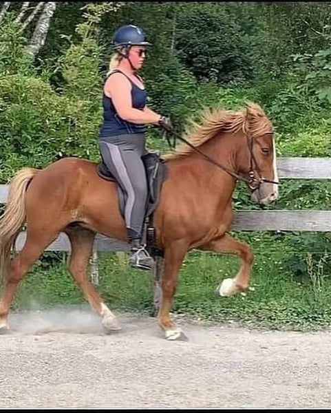 Beautiful glamour with a superb tölt! Incredible temperament! He is very people-oriented. He needs a rider who enjoys speed, but he is very well-trained and understands all the cues. Very calm-minded with both adults and children! Come and see him! Currently, he is in the care of a friend in Saint-Lô!!