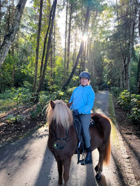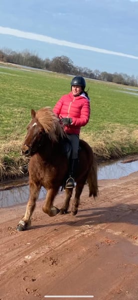 Skelmir ist ein sehr liebes unerschrockenes Ausreitpferd. Schöner Tölt.