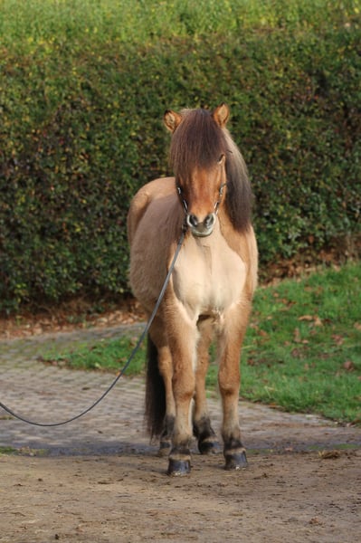 Keilir vom Kastanienwald - DE2013163919 V. Kraftur vom Heesberg - 8,22 M. Sif frá Bergstöðum MV. Kolgrímur frá Kjarnholtum I - 8,23 - Lieb - Groß - Ruhig - Erfahren - Unerschrocken - Wenig Temperament - Hübsch - Kein Ekzem - Verkehrssicher Keilir ist ein großer lieber freundlicher Wallach. Er ist in 2013 in Deutschland geboren und aufgewachsen. Keilir ist ein absoluter Goldschatz! Das Pferd was alles hat! Er ist groß, lieb, talentiert, unerschrocken und hat schöne klar getrennte Gänge. Er hat ein ruhiges Temperament, ist unerschrocken und bleibt immer bei sein Reiter. Er hat gut getrennte Gänge mit viel Tölt. Keilir ist aufmerksam und menschenbezogen. Er geniesst Aufmerksamkeit und Streicheleinheiten, kommt einen aber nie zu nah. Er ist höflich und neugierig. Keilir war Teilnehmer an einige Turniere; da war er unerschrocken und sehr gut kontrollierbar. Sein höchste Note war 5,70 in der Viergangprüfung V5 und 5,50 in der Töltprüfung T4. Wir sehen Keilir nicht unbedingt als Sportpferd, da ihm da Temperament fehlt. Wir sehen Keilir eher als gehobenes Freizeit-Pferd für schöne ruhige Ausritte. Keilir ist ein absoluter Frauenschwarm; groß, charmant und schöne lange Beine und unwiderstehliche Augen. Er passt zu vielen Menschen - auch für Anfänger, Kinder oder ängstliche Reiter geeignet. Für Video oder weitere Info gerne melden! Stockmaß: 1,45 M Weitere Verkaufspferde: https://www.heidberghof.info/islandpferde/verkaufspferde/
