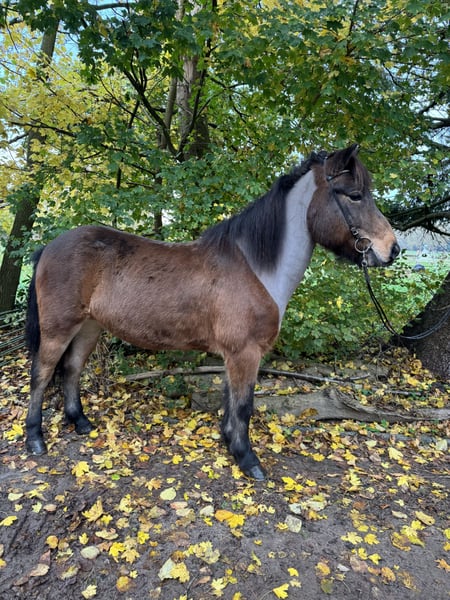Ægir ist ein freundlicher, motivierter Islandpferdewallach mit angenehmem Vorwärtsdrang – ideal für Freizeit und Turnier. Er ist absolut brav und zuverlässig und kommt mit unterschiedlichen Reitern bestens zurecht. Ob auf dem Platz, im Gelände oder auf der Ovalbahn – Ægir macht stets motiviert mit und bereitet seinem Reiter viel Freude. Im Gelände zeigt er sich souverän und nervenstark: Weder Straßenverkehr, Landmaschinen noch Fahrräder bringen ihn aus der Ruhe – ein echtes Verlasspferd! Dank seiner fundierten Ausbildung und seines klaren Charakters ist Ægir auch für Jugendliche oder Reiter, die das Passreiten erlernen und auf Turnieren starten möchten, der perfekte Trainingspartner. Genauso ist Ægir aber auch ein lieber, verlässlicher Kumpel für entspannte Ausritte in der Natur – immer motiviert, aufmerksam und zuverlässig unterwegs. Darüber hinaus ist Ægir „scheckheftgepflegt“: Er wird regelmäßig gearbeitet und fachgerecht beschlagen, ist turniererfahren und zeigt sich auch beim Verladen und auf längeren Anhängerfahrten – selbst alleine – absolut unkompliziert. Er ist geimpft und die Zähne werden regelmäßig in einer Fachtierpraxis für Pferdezahnheilkunde kontrolliert und gepflegt. Ægir ist das ideale Pferd für alle, die ein verlässliches, motiviertes und vielseitiges Islandpferd suchen – ein Partner, der sowohl auf dem Turnierplatz als auch bei gemütlichen Ausritten in der Natur begeistert.