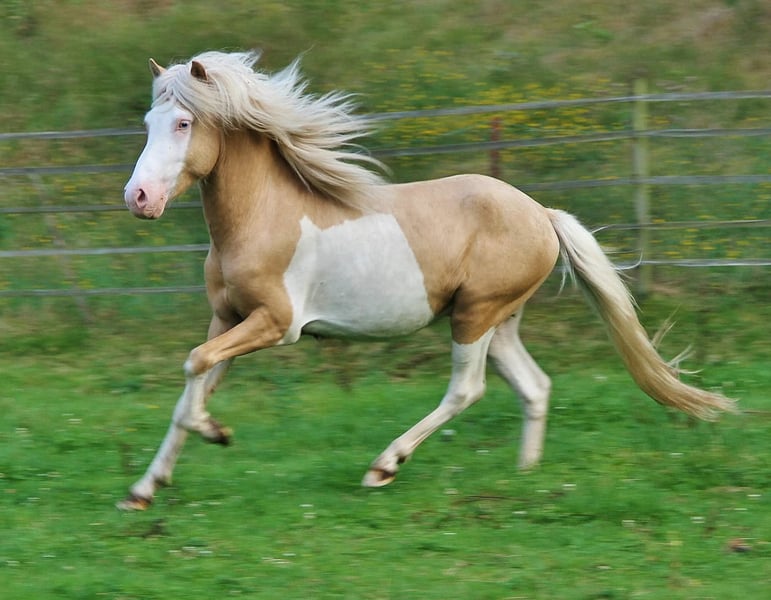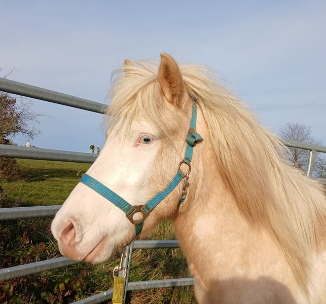 Zukünftiges allround verlass Familienpferd für Freizeit, Kurse, Sport , Therapie und mehr sucht Bestplatz. Dreymandi bringt alles mit was man sich von einem potentiellen Allrounder wünscht. In Charakter und Temperament eher ausgeglichen und ruhig, stehts freundlich, unkompliziert und unartenfrei. Für sein junges Alter bisher wirklich unerschrocken und gelassen. Egal ob alleine von der Herde weg, Verladen in den Pferdeanhänger und auch alleine gefahren werden, irgendwo längere Zeit angebunden stehen, er bleibt cool. Neue Umgebung , neue Aufgabe er guckt sich alles in Ruhe an und ist bei Unsicherheit seinerseits eher etwas stoisch und bleibt lieber stehen, genau das macht ihn mit entsprechender Ausbildung zu einem zukünftigen Verlasspferd für Klein und Groß. Dabei ist er Ganglich sehr ansprechend mit viel Potential. Er gehört zu den guten Fünfgangveranlagten Pferden mit Schritt ohne Pass. Natürlich vorhandenem Trab mit schönen Bewegungen. Und Galopp mit Bergauftendenz. Auch Tölt zeigt er immer wieder wie auch Pass. Laufvideos sind aktuell, sein erstes Mal im Longierzirkel, dieser steht leider nicht eben und ist auch zusätzlich uneben im Grund durch die hohen Grasbüschel. Aber durch die leichte Hanglage ist schön zu erkennen wie er spätestens Bergab den Tölt auspackt der reichlich vorhanden ist. Dreymandi bringt zusätzlich die seltene Sonderfarbe Goldisabellhelmschecke mit. Im Winter ist er etwas Heller aber im Sommer wunderschön satt Goldfarben was ihm einfach in Kombination mit seinen Abzeichen und den blauen Augen ein wunderschönes Aussehen gibt. Er hat natürlich volle Papiere und ist bestmöglich verpflegt und gut sozialisiert aufgewachsen. Inkl. Impfen, Wurmkur, Hufpflege und Mineralfutter. Aktuell befindet er sich wieder in einer etwas unvorteilhaften Wachstumsphase kommt momentan auf ca. 137 Stm und kann daher durchaus um die 139 Endmaß erreichen. Er ist kräftig vom Fundament mit sportlichem Touch. Gerne kann er angeschaut werden. Alles weitere bei Kontakt.