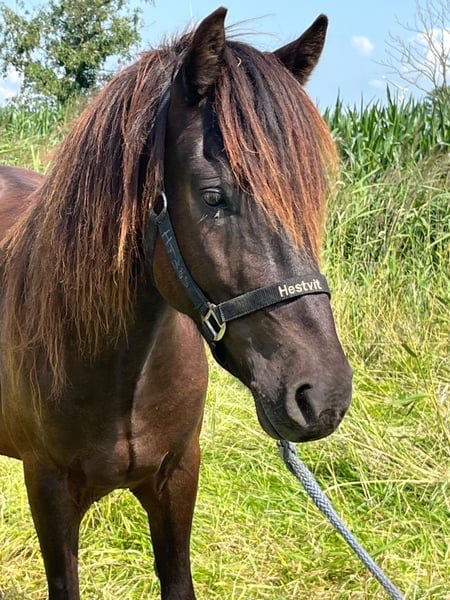 Blómi von Eldhólar (DE2021122997) V: Skarði vom Vindstaðir (Zuchtweltmeister, 8,22 ges.) M: Blíða von Eldhólar MV: Þórarinn frá Oddhóli (8,17 ges., u.a. Bis 6,67 in F1) Blómi ist ein absolut freundlicher kleiner Fünfgangwallach, der einem das Herz aufgehen lässt! Er ist in jeder Lebenslage für seine vier Jahre sehr cool und gelassen und bildet einen Ruhepol in seiner Junghengstherde. Er zeigt alle 5 Gänge mit sehr guter Qualität, damit sieht man später auf Turnieren bestimmt auch nicht schlecht aus! Blómi kann alles, was man mit vier Jahren können muss (Aufhalftern, Führen, Hufschmied, Tierarzt, etc.) Wenn er ausgebildet ist, wird er bestimmt das perfekte Kinder-/Familienpferd, er ist einfach so brav und liebt es Menschen um sich zu haben, die sich mit ihm beschäftigen, ohne dabei aufdringlich zu werden! Da er eher etwas kleiner ist (ca. 1,33 m) kommt er vermutlich eher für zierliche Erwachsene oder Kinder/Jugendliche in Frage. Er ist aber mit seinen 4 Jahren natürlich auch noch nicht voll entwickelt! Aktuell steht er noch in einer Junghengstherde in der Nähe von Cuxhaven und kann nach Absprache besichtigt werden. Auf Wunsch besteht auch die Möglichkeit, dass ich Blómi noch ausbilde und auf seine neue anstehende Aufgabe perfekt vorbereite! Ich bin gelernte Pferdewirtin Spezialreitweisen und IPZV Trainer C, arbeite seit langer Zeit als Islandpferde Trainerin und habe mich auf die Jungpferdearbeit spezialisiert. Leider hatte Blómi im Frühjahr eine Verletzung durch ein stumpfes Trauma an einem Auge, er kann sehen, aber es ist nicht 100% klar, wie es in Zukunft aussehen wird. Es ist aber tierärztlich bestätigt, dass normal er nutzbar sein wird, dem Start ins Reitpferdeleben steht also nichts im Weg. Deswegen wird er aber weit unter Wert abgegeben!! Tierärztlicher Bericht zum Befund des Auges liegt vor. Bei Fragen etc einfach gerne eine PN schreiben! Es handelt sich hier um einen Privatverkauf!
