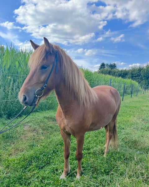 Besti ist einfach der Beste! Nicht nur weil sein Vater der bekannte Besti frá Upphafi ist sondern weil, er 4 Jahre jung, nicht lange unterm Sattel und schon jetzt das liebste Jungpferd, mutigste Reitpferd und neugierigste Familienpferd der Welt ist. Verschmust und dem Menschen zugewandt, interessiert, mutig und neugierig Neues zu lernen und die Welt zu entdecken. Und das jeden Tag aufs Neue. Ein Traum für alle die gerne tölten. Besti ist Naturtölter und flitzt gerne Taktklar, stets regulierbar durchs Gelände. Aber auch schon jetzt lässt er ganz easy alle 5 Gänge über den Sitzt und durch die Stimme schalten und er ist stets auf Abruf regulierbar. Ich reite mit ihm meistens alleine aus und das obwohl er noch so jung ist, ist schon jetzt eine Versicherung für jeden Reiter. Meine 7 jährige Tochter trägt er auch stets brav durch die Gegend. Auf Besti ist einfach Verlass! Wer später aber auch Luft auf den Turnieren schnuppern möchte ist mit Besti ebenfalls perfekt gerüstet. Die Gangqualität lässt keine Wünsche offen. Ist bei seinem Vater aber auch kein Wunder ;-) Ein Herz aus Gold sucht jetzt seine Familie und seine Lebensaufgabe. Willst du dein Herz von ihm klauen lassen? Dann komm ihn gerne besuchen :-)