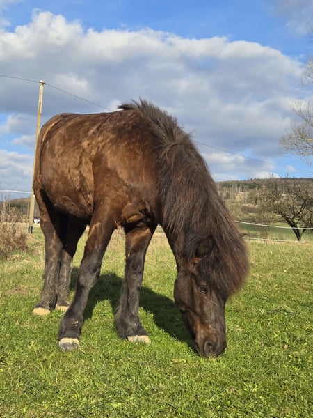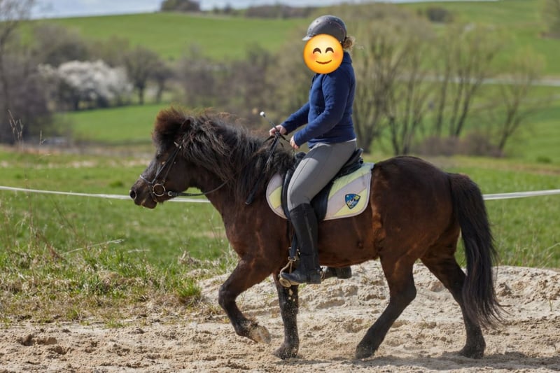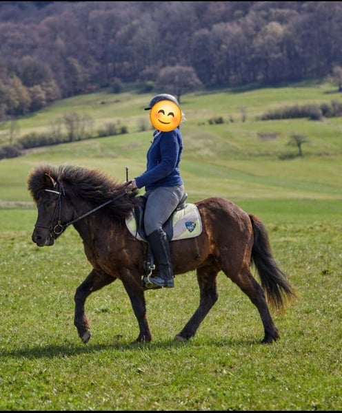 Zum Verkauf steht unser fünfjähriger Islandwallach Dimmi, ein ganz besonderer Partner für alle, die ein ehrliches, menschenbezogenes Pferd suchen. Dimmi ist ein absolut lieber und verschmuster Wallach im „Kumpeltyp“, der die Nähe zum Menschen sehr genießt. Er zeigt sich im täglichen Umgang stets freundlich, leistungsbereit und aufmerksam, dabei aber gut und einfach zu regulieren. Kinder können ihn problemlos putzen und auch auf ihm geführt werden – dabei bleibt er ruhig und brav. Besonders hervorzuheben ist seine Geländesicherheit. Dimmi geht alleine und unerschrocken ins Gelände und zeigt sich dabei mutig und zuverlässig. Unter dem Sattel ist er ein Naturtölter mit viel Freude an der Bewegung. Der Trab muss noch altersentsprechend herausgearbeitet werden. Ebenfalls geht Dimmi an der Longe und hat Interesse an Bodenarbeit und Zirkuslektionen (hier kommt durch das er für ein Leckerchen alles machen würde :-) ) Trotz seines ausgeglichenen Charakters ist Dimmi aufgrund seines jungen Alters kein reines Anfängerpferd. Er sucht einen einfühlsamen und konsequenten Menschen, der ihn weiter fördert und mit ihm zusammenwachsen möchte. Dimmi ist deutsch gezogen und hat kein Ekzem. Schmiede und Verladen ist für ihn kein Problem. Aktuell hat er ein Stockmaß von ca. 1,35 cm. (Die Reiterin auf den Fotos ist 175cm groß) Wir wünschen uns für Dimmi ein liebevolles Zuhause mit viel Zeit, Zuwendung und Verlässlichkeit. Uns ist es besonders wichtig, dass er den richtigen Menschen findet. Bei Interesse und für weitere Informationen freuen wir uns über eine Nachricht.