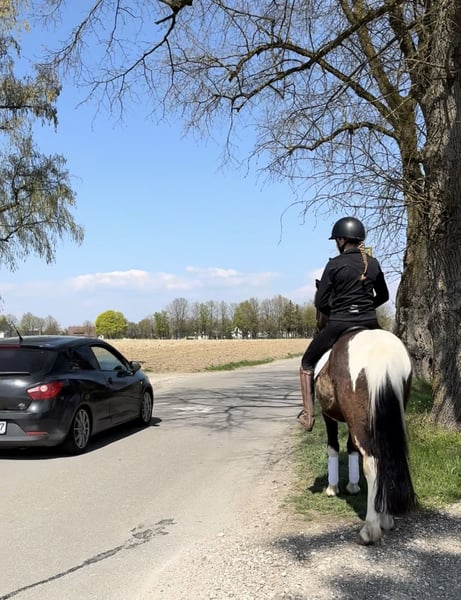 Wunderschöner großer Isländer Wallach, 5 Jahre, großrahmig, viergängig, supercool mit traumhafter Scheckung Manchmal kommt ein Pferd, das einfach alles mitbringt: Charme, Charakter, Talent, Größe und absolute Coolness. Dieser bildhübsche 5 jährige Island Wallach, in Deutschland geboren, begeistert nicht nur mit seiner wunderschönen harmonischen Scheckung sondern vor allem mit seinem einzigartig ausgeglichenen und freundlichen Wesen. Mit aktuell ca. 1,44 m Stockmaß und einem geschätzten Endmaß von etwa 1,48 m ist er ein sehr großer, kräftiger und großrahmiger Isländer, der auch für größere Reiter hervorragend geeignet ist. Er ist ein echtes Traumpferd für Freizeitreiter, ambitionierte Töltliebhaber und alle, die ein nervenstarkes Verlasspferd suchen. Charakter, einfach ein Goldschatz Dieser liebe Wallach ist ein Pferd, das durch seine innere Ruhe und Gelassenheit begeistert. Er ist: • supercool • ausgeglichen • menschenbezogen • freundlich • verspielt mit Artgenossen • bestens sozialisiert • neugierig und lernfreudig Besonders beeindruckend ist seine Einstellung zu allem Neuen: Er liebt es, unbekannte Situationen zu entdecken und bleibt dabei entspannt und souverän. Gerade im Gelassenheitsparcours zeigt er seine absolute Stärke. Hier ist er mit Freude, Neugier und großer Coolness bei der Sache und lässt sich nicht aus der Ruhe bringen. Ausbildung, sicher viergängig mit tollem Tölt Aktuell ist er klar viergängig geritten und überzeugt besonders durch seinen sicheren, angenehm zu sitzenden Tölt. Sein Galopp ist super durchgesprungen und leicht regulierbar. Er lässt sich am komplett durchhängenden Zügel im Galopp entspannt weiterreiten, ohne dabei das Tempo zu steigern. Das macht ihn gerade für Reiter interessant, die ein bequemes, leicht zu regulierendes und nervenstarkes Reitpferd suchen, welches ein gewisses Maß an Sicherheit vermittelt. Er zeigt dabei bereits: • eine gute Balance • viel Übersicht • eine tolle Arbeitseinstellung • entspannte Lauffreude • Talent für mehr Hier wächst definitiv ein Pferd heran, das nicht nur ein fantastisches Freizeitpferd sondern durchaus auch für weitere Förderung sehr interessant ist. Gelände, entspannt und zuverlässig Er war bereits mehrfach mit im Gelände und hat dort ebenfalls absolut überzeugt. Neue Wege, Umweltreize und unterschiedliche Situationen hat er durchweg souverän und easy gemeistert. Er zeigt sich mutig, gelassen, aufmerksam, sicher, unkompliziert. Schon jetzt ist er ein herrliches Ausreitpferd, das seinem Reiter ein tolles Gefühl von Sicherheit vermittelt. Haltung & Alltag Er ist in Deutschland geboren und kennt robuste 365-Tage-Draußenhaltung, was ihn zu einem gesunden, ausgeglichenen und hervorragend sozialisierten Jungpferd gemacht hat. Selbstverständlich ist er, schmiedefromm, verladefromm, ekzemfrei, unkompliziert im täglichen Handling und absolut verträglich in der Herde Fazit Ein außergewöhnlich sympathischer, großrahmiger und wunderschöner Islandwallach, der bereits jetzt durch Rittigkeit, Coolness, Töltqualität und Charakter begeistert. Ein Pferd für Menschen, die nicht einfach irgendeinen Isländer suchen, sondern einen echten Partner fürs Leben mit Talent, Verlassqualität und ganz viel Herz. Ein Traumpferd in jeder Hinsicht. Für einen Termin mit Vorreiten und Probereiten berechnen wir 40€, die beim Kauf des Pferdes selbstverständlich erstattet werden. Hierfür bitten wir Sie um Verständnis. Bei Interesse und Rückfragen melden Sie sich gerne telefonisch oder per WhatsApp unter 049(0)1709343872