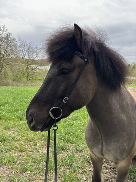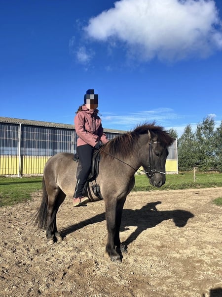 Rökkvi vom Ruppiner Hof Sire: Atli frá Nordur-Hvammi Dam: Rubla frá Refsstödum Rökkvi is a large-framed, five-gaited dressage horse of German breeding. He has been trained appropriately for his age over the past 2.5 years and consistently demonstrates a willing, motivated, and diligent attitude. He is easy to ride and responds well to aids. Rökkvi works with enthusiasm and possesses a good basic quality of movement. In the terrain, he is currently somewhat skittish, so he is not suitable for beginners. He requires an experienced rider who can provide him with calm, clear guidance to ensure his confidence and further development. At present, Rökkvi is ridden in four gaits. He exhibits a lot of fluid, expressive tölt and canter. The rack is present but has not yet been further developed. If you are interested or would like more information, I look forward to hearing from you.