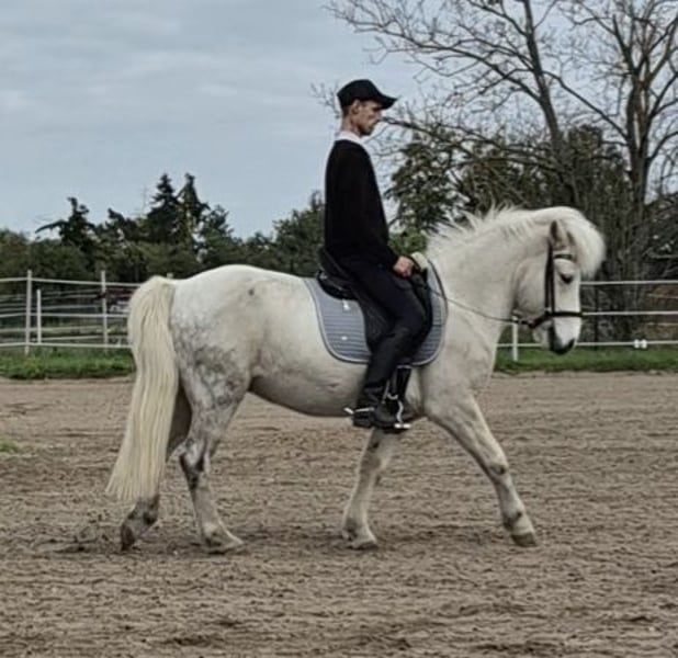 Hjör ist ein ausdrucksvoller, harmonisch gebauter Islandpferdwallach mit traumhafter Mähne und einem Stockmaß von ca. 140 cm. Als Jungpferd zeigte er sich laut Beurteilungsurkunde viergängig mit wenig Tölt, was von mir auch nicht weiter gefördert wurde – daher wird er aktuell als dreigängig abgegeben. (Gesamtnote Beurteilungsurkunde für Fohlen 8,21 mit dem Richterspruch: "Junges Hengstfohlen mit außergewöhnlich gutem Gebäude, feinen Reaktionen und federnden Gängen mit sehr gutem Raumgriff." Hjör bringt folgende Eigenschaften mit: - sehr gute Hufe, barhuf – für längere Strecken im Gelände besitzt er passende Hufschuhe - gesund, regelmäßig geimpft, entwurmt und ekzemfrei - geht zuverlässig und nervenstark (in der Gruppe) ins Gelände, auch gerne mit Rad und/ oder Hund als Begleitung - verkehrs- und straßensicher - kennt die Platzarbeit, bevorzugt jedoch ganz klar das Gelände - braucht aufgrund seines Alters eine klare und liebevolle Führung - herdenverträglich, eher ranghoch - steht brav bei der Hufbearbeitung - unkompliziert im Handling, reagiert jedoch empfindlich auf Hektik, Druck oder lauten Stallbetrieb - er verträgt keine Heulage - Equidenpass vorhanden - wurde vom Züchter aus einer renommierten Islandpferdezucht von mir erworben Momentan steht Hjör tagsüber in einer kleinen Wallachherde, nachts in einer Paddockbox. Ein ähnliches, ruhiges Umfeld würde ich mir auch künftig für ihn wünschen. Trotz seines lieben Wesens ist Hjör kein Anfänger- oder Kinderpferd und nicht für einen Reitschulbetrieb geeignet. Gute Reitkenntnisse sollten vorhanden sein, sowie Interesse daran, ihn weiter zu fördern und regelmäßig auszulasten. (Bodenarbeit, Geländeritte) Er ist zur Zeit in Beritt, um ihn weiter zu fördern und auszubilden. Hjör sucht einen Menschen, der ihm Zeit, Geduld und Herz schenkt. Er wird umständehalber abgegeben, es gilt Platz vor Preis. Eine Ankaufsuntersuchung (AKU) kann auf Kosten des Käufers selbstverständlich gerne durchgeführt werden. Um Reittourismus zu vermeiden, wird beim Probereiten eine Pauschale von 30 € erhoben – diese wird bei Kauf selbstverständlich voll angerechnet. Sattel und Trense werden gegen Aufpreis gerne abgegeben.