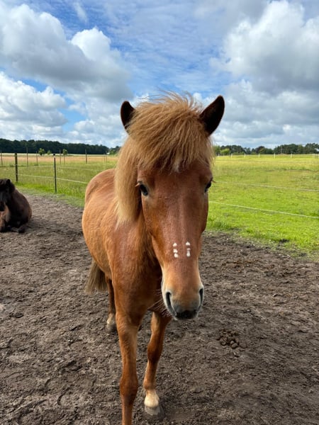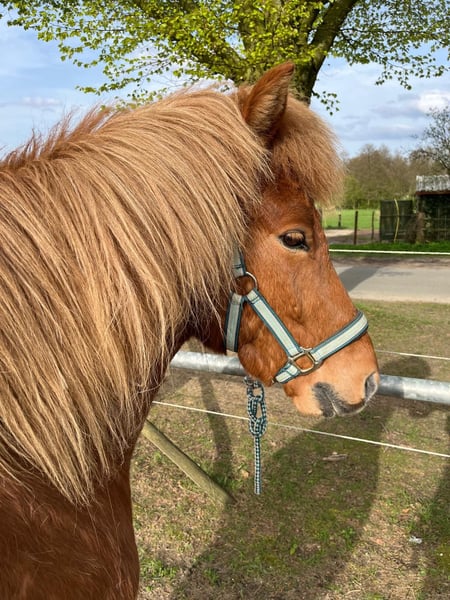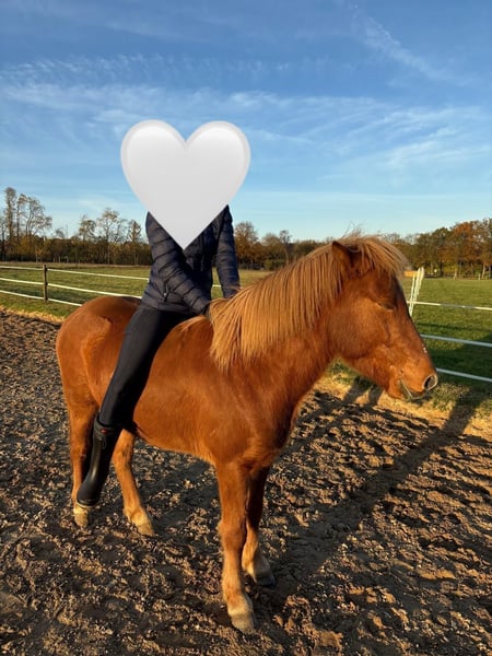 Zum Kauf steht ein 7 jähriger, deutsch gezogener Islandwallach, Viergänger. Dynjandi hat ein tolles Gangpotenzial, einen schönen, langen Schritt, einen super auszusitzenden, schwungvollen Trab, einen ansprechenden Töld und einen wirklich sehr gut gesprungenen Galopp. Der Tölt ist abrufbar , wurde aber noch nicht so viel trainiert und ist daher ausbaufähig, da wir erstmal viel Wert darauf gelegt haben, dass er sich selbst in den drei Grundgangarten trägt. Perfekt für Jugendliche und Erwachsene, die ein zierliches, sportliches Pferd suchen, mit dem sie angstfrei durchs Gelände reiten können oder auch ambitionierte Freizeitreiter, die Turniere reiten wollen. Dank Dynjamdis großartigen Abstammung und seines Alters ist bei ihm alles möglich. Dynjandi ist ein sehr menschenbezoges Pferd, welches sofort angeflitzt kommt und es liebt gekrault zu werden, ohne dabei dominant zu sein. Wer einen Hund und ein Pferd in einem Tier sucht, ist bei Dynjandi richtig. Wir haben dieses Pferd 5 jährig gekauft und schonend ausgebildet. Er kennt alles, Ausritte, Platz, Bahnfiguren, Longenarbeit, Spaziergänge zum Bach in Begleitung von Kinderwagen, GoCard, Rad und ferngesteuerten Autos. Er ist ein tolles Verlasspferd, welches gerne alleine ins Gelände geht, dort schussfest unterwegs ist, im wahrsten Sinne, denn es gibt nichts, was ihn aus der Ruhe bringt. Im Gelände mit mehreren Pferden ist er dynamischer und lauffreudiger. In der Bahn arbeitet er fleißig mit. Unsere Tochter wird Dynjandi jetzt aufgrund der Schule und anderer Interessen nicht mehr gerecht, daher wünschen wir uns einen Menschen bis maximal 65 kg, der Dynjandi weiter fördert und ihm die tägliche Zuwendung und Beschäftigung geben kann, die er für ein glückliches Pferdeleben braucht. Er ist ein Schatz und hat es verdient. Er wird nur in sehr gute Hände vermittelt. Probereiten ist jederzeit möglich. Weitere Infos gerne per Telefon, einfach Nr hinterlassen und ich rufe zurück!