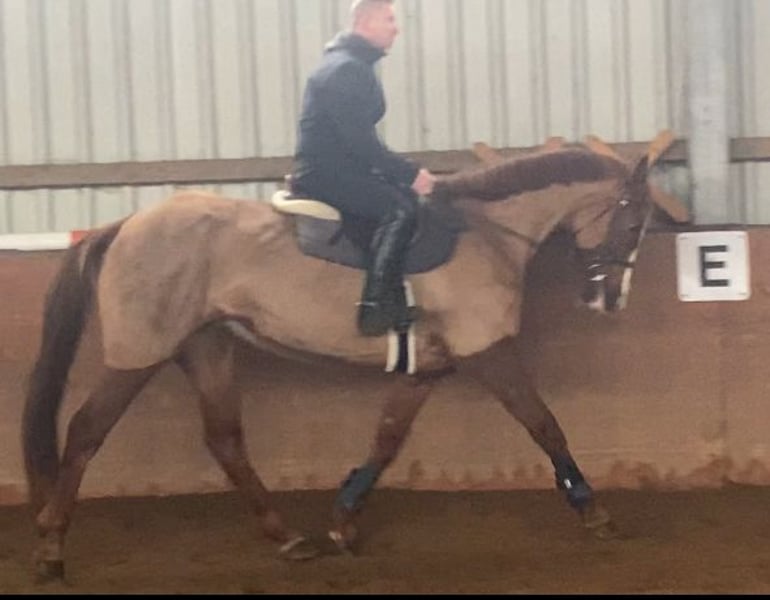 This charming mare has the right temperament, is not spooky, and has a strong desire to do her best. She is easy to sit and responds softly to the aids. She makes a great jump, although she has not been extensively trained in this yet and still needs some more experience and routine.