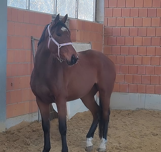 Sweet 12-year-old mare that everyone will instantly fall in love with. She is familiar with tractors, trucks, and other machinery. She quickly integrates into a new herd and immediately seeks out new friends. She is also comfortable around other animals, such as dogs. She has been ridden both indoors and on the trails. If desired, she can be sold with complete new tack for a small additional fee. Transportation can be arranged. A veterinary pre-purchase exam, including X-rays and blood tests, can be performed by your own veterinarian if preferred. We look forward to your call at 01774289729. Written inquiries will not be answered. Calls from blocked numbers will be automatically rejected.
