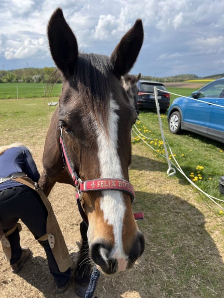 Sprzedawana jako klacz, urodzona w 2012 roku, brązowa, o wzroście 160 cm, zdrowa. Jest bardzo przywiązana do człowieka i uwielbia się przytulać. Chętnie pracuje na lonży i podczas tego jest zawsze uważna, posiada bardzo wyraziste i piękne ruchy. Klacz jest wspaniale ułożona pod siodłem, dobrze reaguje na przyczepę, czyszczenie, siodłanie, samodzielne odchodzenie, a także na kowala – wszystko bez problemu. Na lonży wykonuje wszystkie trzy podstawowe gaits bez zarzutu, jest bardzo wrażliwa i dobrze słucha głosu. Przejawia ambicje skokowe, chętnie pracuje na ziemi i w gimnastyce, wymaga dalszego wsparcia, ponieważ ma duży potencjał i chce się podobać! Niestety, prawdopodobnie miała bardzo złe doświadczenia podczas nauki jazdy i jeździ tylko na doświadczonych, pewnych siebie jeźdźcach. (Wtedy jeździ się na niej dobrze.) Przy wsiadaniu jest początkowo przestraszona. Była już dwukrotnie w treningu. Niestety, nie mam wystarczająco czasu, aby odpowiednio ją wyszkolić. Dlatego szukam dla niej doświadczonego jeźdźca, który poświęci jej jeszcze trochę czasu na dalszą naukę. Miała już źrebię, dlatego jest również interesująca jako klacz hodowlana (z papierami). Potrzebuje miejsca, gdzie będzie mogła się dalej rozwijać. Nie sprzedaję jej dla początkujących ani powracających jeźdźców. Wszystkie szczegóły, zdjęcia, filmy itp. chętnie przesłać w wiadomości prywatnej lub podczas spotkania.