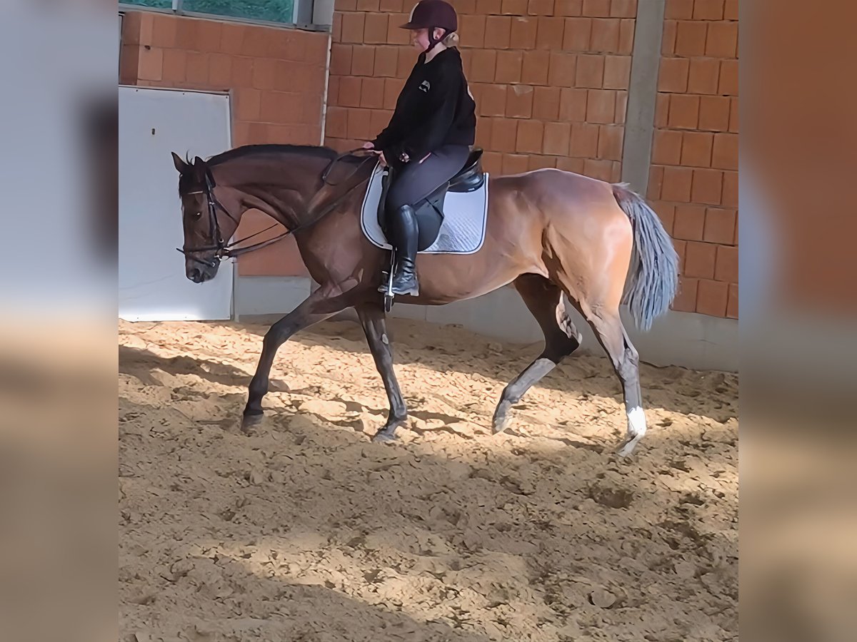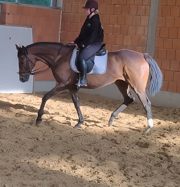 The relaxed character of this friendly mare is already evident in the picture. Very calm under saddle and always with a relaxed tendency to stretch "forward and downward." Easy to set in the contact. Extremely pleasant to sit on and with an inner calm, she gives her rider a sense of security. She understands how to forgive rider mistakes. Riders with an unsteady seat or tapping thighs do not irritate her. Despite her 15 years, she is still fresh as she has spent a lot of time in breeding (also an officially registered broodmare). Overall, a great leisure horse that is also very interesting for further breeding use. If everything fits, we would also sell her into a reasonable riding school operation. Transport can be organized. If needed, she can be sold with complete new equipment for a small additional fee. A veterinary pre-purchase examination can also be conducted by your own veterinarian, including X-rays and blood tests. We look forward to your call at 01774289729. Written inquiries will only be answered by automatically generated messages. Due to time constraints, we do not read emails or WhatsApp messages.