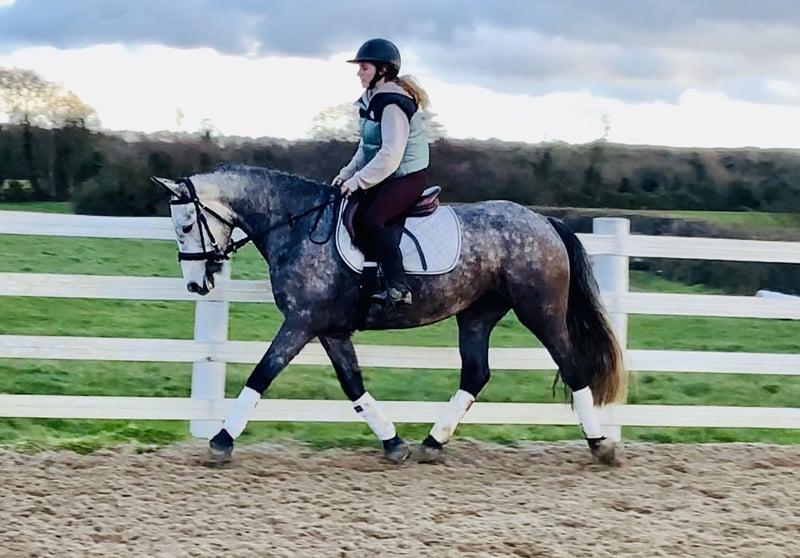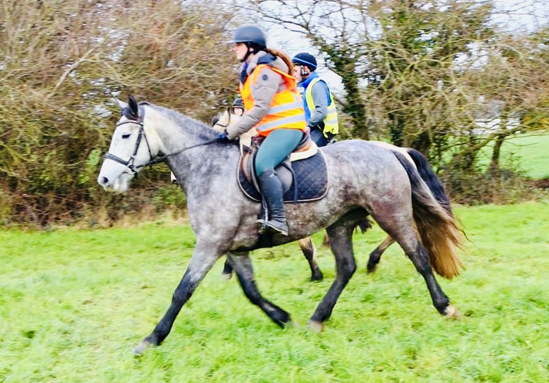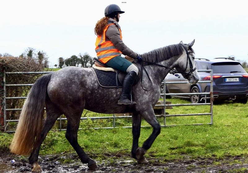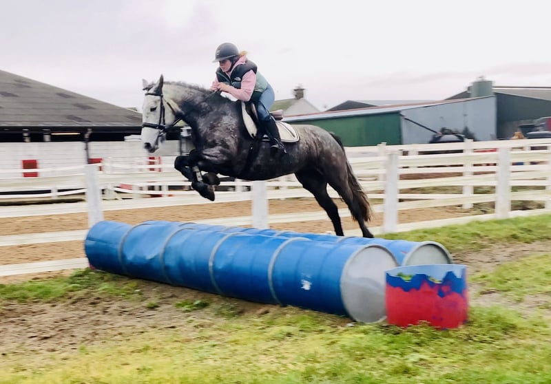 Tracey – Exceptional 5-Year-Old Traditional Irish Sport Horse Mare Tracey is a highly talented 5-year-old traditional Irish Sport Horse mare, currently standing at 15.3 hh, with ample potential to grow to 16 hh. She is a high-quality young mare with a fantastic attitude and all the qualities necessary for a successful sporting career. She is excellently bred: her sire is the Irish Draught stallion Longwood Dunbelievable, and her dam is the Connemara mare Helen’s Lady, by the outstanding stallion Classiebawn Hugh’s Promise. This combination gives Tracey athleticism, bravery, and excellent rideability. Tracey is an extraordinary show jumper. She is cautious, honest, quick, and very clever, with excellent technique over fences. She independently assesses distances and provides the rider with a great feeling. She currently jumps confidently up to 90 cm courses and shows enormous potential in free jumping – clearing obstacles up to 1.20 m with plenty of scope and air. Additionally, she has three very good basic gaits and a soft mouth in a snaffle bit, making her very pleasant to ride on the flat as well. She is forward-going without becoming overly strong or tense. Tracey loves her work and is eager to learn new things. She is a true pleasure to ride both jumping and cross-country – an incredibly fun mare for a confident rider looking to develop a young horse. Tracey is ready to start her competition career and is well-suited for show jumping, eventing, or versatile all-round riding at an ambitious level. Character & Handling - Soft mouth - Hacks alone or in company - Traffic safe - Easy to shoe, load, catch, and ride - No stable vices - Open to any veterinary examination Tracey is an honest, talented, and extremely pleasant mare with a bright future ahead. Price includes delivery to your stable in the UK. Exchange possible if you're not satisfied. Watch the video below. Phone: +353 86 807 7626 Email: gertytynan@gmail.com