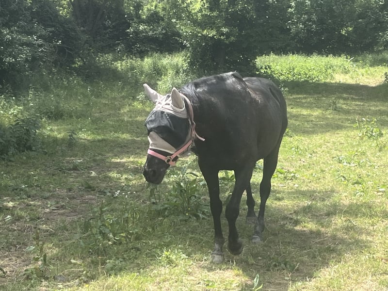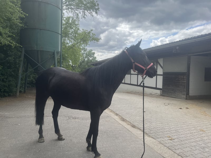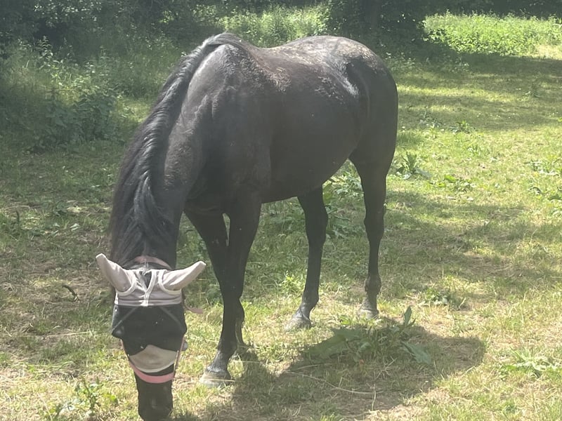 Schöne Rappstute zu verkaufen , sie ist brav im Umgang , kennt Kinder , Hunde und Traktoren , sie ist longiert , springt gerne frei und geht als Handpferd mit ins Gelände , sie steht gut beim Schmied und beim Tierarzt , sie ist herdenverträglich mit Wallachen und Stuten , nicht ranghoch , sie ist noch nicht eingeritten.Sie kennt Offenstall und Boxenhaltung