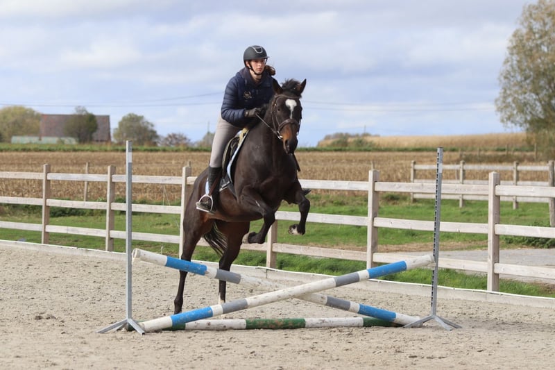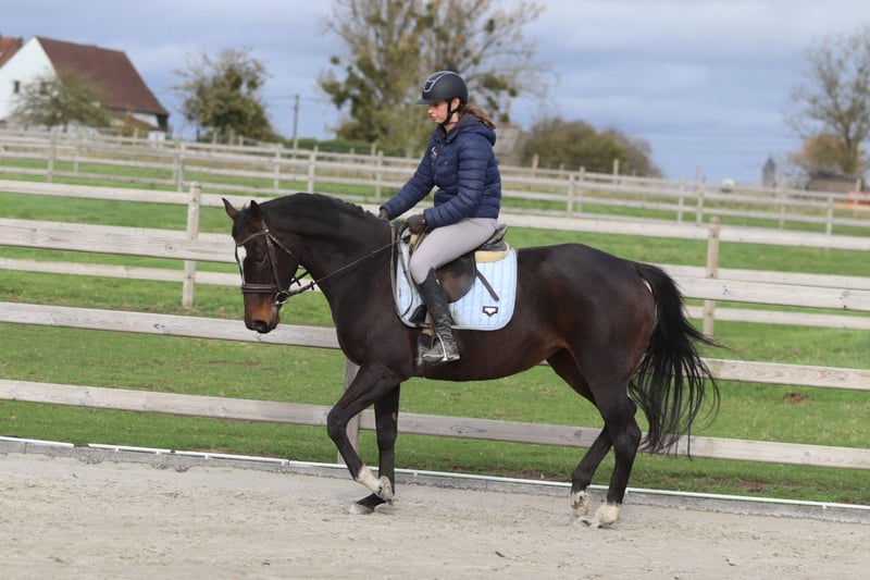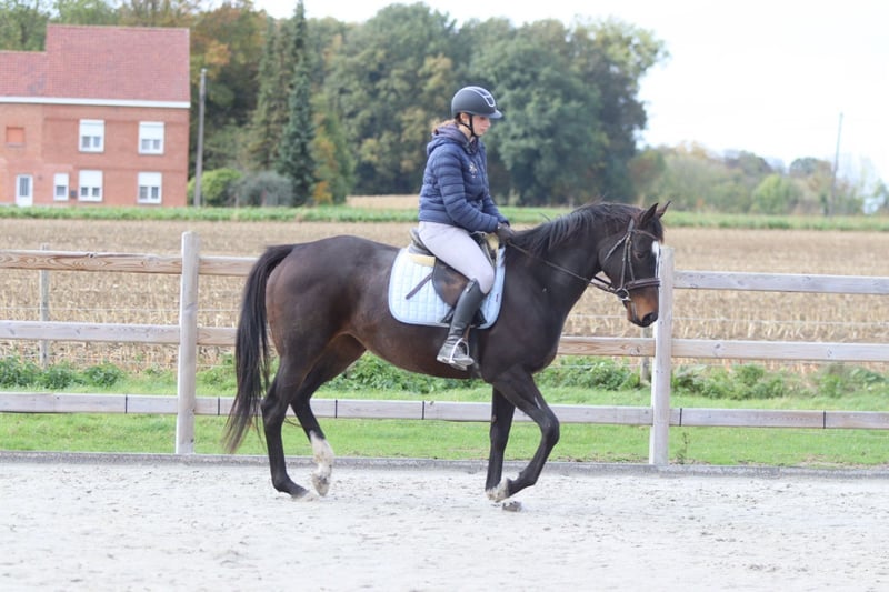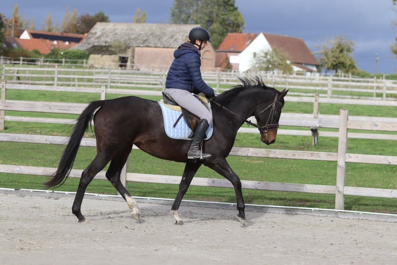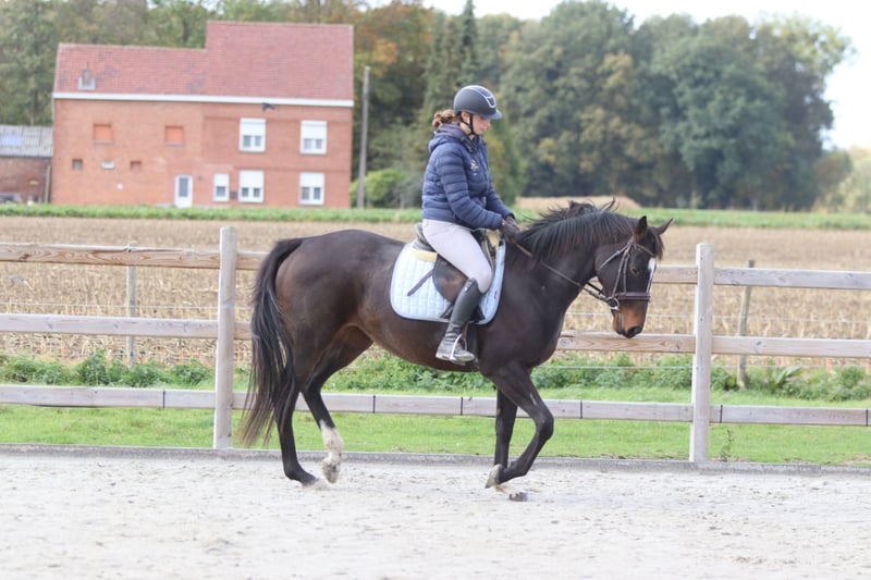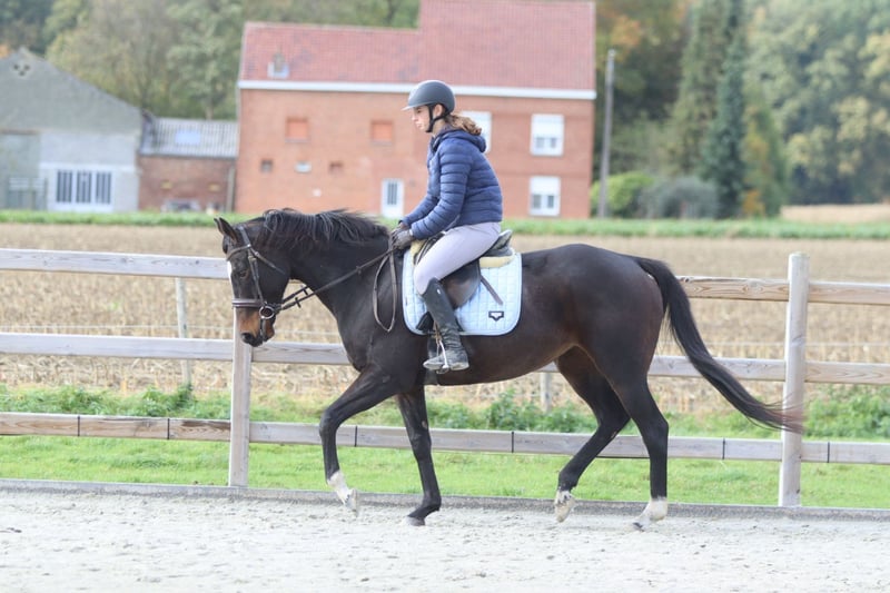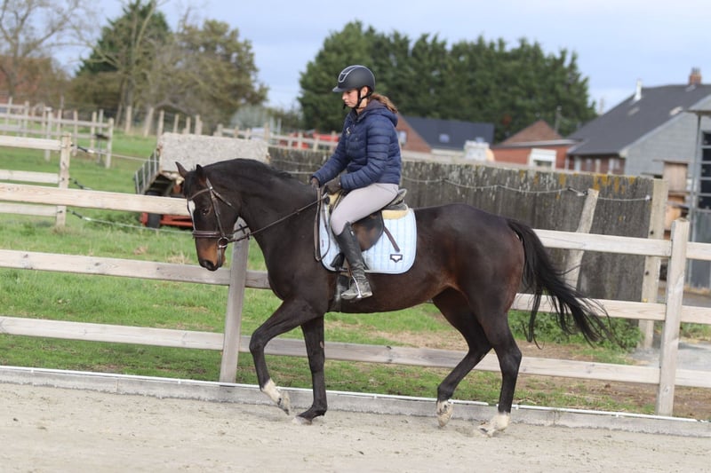 ✨ Cali ✨ Beautiful 8-year-old mare, standing 1.62 meters tall. Cali is a very pleasant and easy-to-ride horse, very well-behaved in handling with a gentle temperament 💛. 🐎 She is easy to submit and responds well to aids. 🪜 She effortlessly takes jumps of around 80 cm – with some training, there is certainly more potential! 👑 She has a lovely head and an elegant appearance. Cali is ideal for recreational riders seeking a reliable and well-behaved horse to enjoy riding and further develop their skills. 📍 Healthy and well-mannered. 📞 For more information or a test ride, call 0032475682243 Ask for videos on our website.