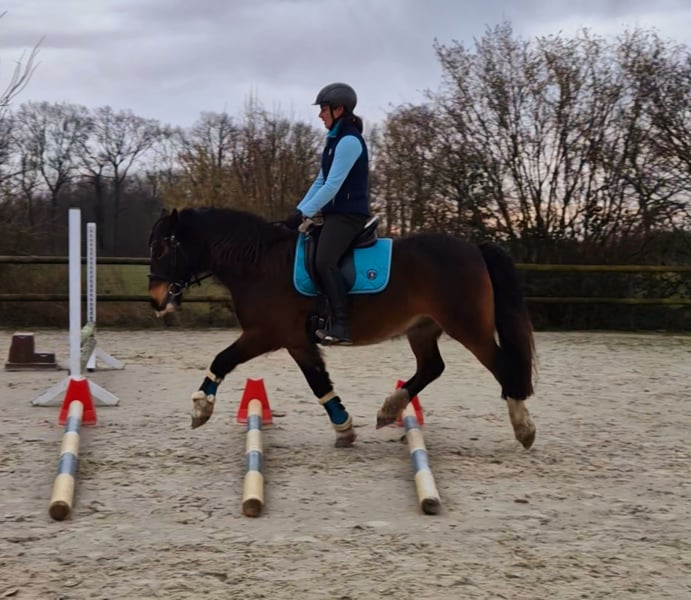 Nach 3 gemeinsamen Jahren muss ich mir eingestehen, dass diese Kombination leider nicht richtig passt. Daher biete ich schweren Herzens meinen vielseitigen Ponywallach zum Verkauf an. Benji ist absolut unverbraucht und wurde sehr abwechslungsreich geritten. Er macht wirklich alles mit: Englisch, Western, mit/ohne Gebiss, ohne Sattel, Bodenarbeit etc ein echter Allrounder. Am liebsten geht er allerdings ins Gelände. Gruppe, zu zweit, mit Handpferd, alleine! Da er eine eigene Meinung hat und bei uns ranghoch ist, eignet er sich besser für fortgeschrittene Reiter. Als reines Kinderpony sehe ich ihn nicht, obwohl er vom Grundsatz her sehr brav ist. Kein Steigen oder Durchgehen! Er ist 2013 geboren, hat einen irischen Pass und ein Stockmaß von 140 cm, wirkt aber größer. Die Reiterin auf den Bildern ist knapp 1,70 m groß. Top gesund, barhuf, geimpft.