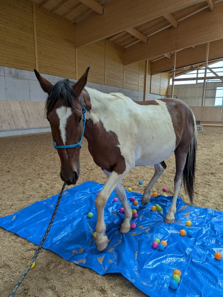 Wir verkaufen unseren 4 jährigen, Braunscheck Wallach Loki. Er ist ca. 155cm groß. Anfang März 2025 haben wir ihn angeritten gekauft und ihm nochmal aufgrund seines Alters und seinem körperlichen Zustand eine Reitpause gegeben. In der Zeit wurde er longiert, auch über Stangen und Cavalettis, haben Bodenarbeit und Freiarbeit gemacht. Ich hatte ihn als Handpferd dabei und war auch mit ihm Spazieren. Er ist sehr unerschrocken und geht auch alleine ins Gelände. Seit Mitte November habe ich langsam begonnen ihn im Gelände Schritt und Trab zu reiten. Er läuft Barhuf und ist sehr brav beim Hufe bearbeiten. Er zeigt sich bei allem immer sehr bemüht und hat einen freundlichen Charakter. Loki ist dem Menschen sehr zugewandt und möchte gearbeitet werden. Bei uns steht er in einer gemischten Herde im Offenstall, das funktioniert sehr gut. Wer also ein freundliches, aufgeschlossenes Pferd sucht zum selbst ausbilden, ist bei ihm genau richtig. Bei Interesse bitte melden.