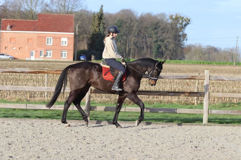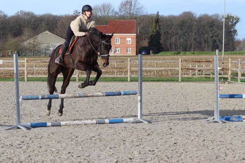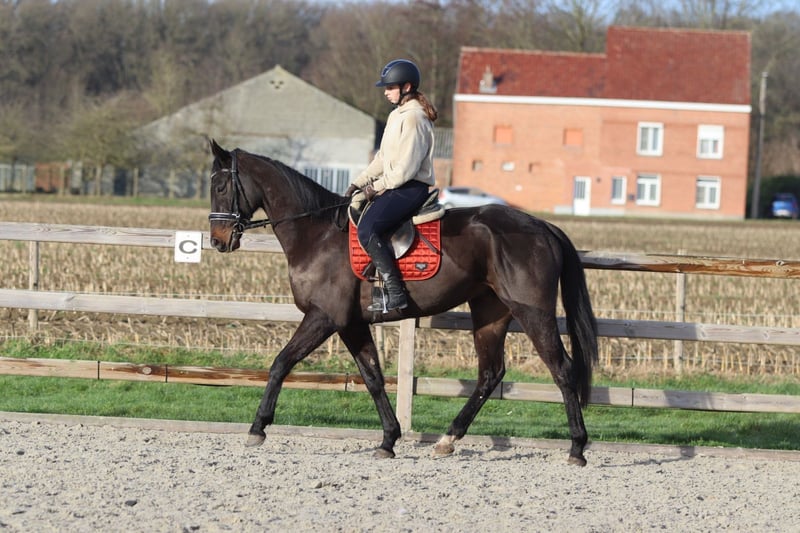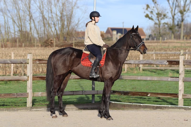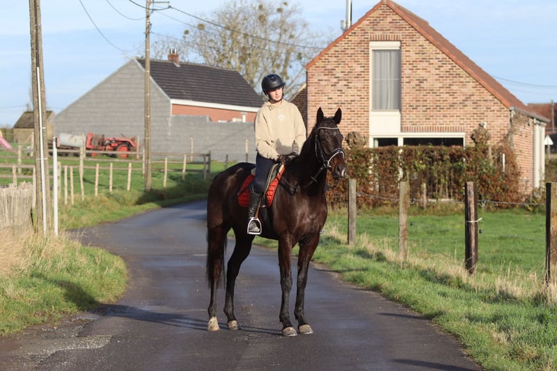 Tiger – magnifique hongre noir de 4 ans (environ 1,66 m) Tiger est un magnifique hongre noir de 4 ans, mesurant environ 1,66 m au garrot. Il est très calme et patient en main, et se laisse manipuler et soigner avec plaisir. Sous la selle, Tiger est souple et réceptif, et se montre comme un cheval calme et fiable, sans comportement problématique. Il aime sauter et le fait facilement, parcourant un parcours de 80 cm sans difficulté. En dehors du manège, Tiger est également un bon compagnon : il n’a pas peur en ville et ne se montre pas regardant. De plus, il est facile à transporter. 📞 Plus d’informations ? 0032 475 68 22 43 🎥 Vidéos disponibles – n’hésitez pas à demander notre site internet.