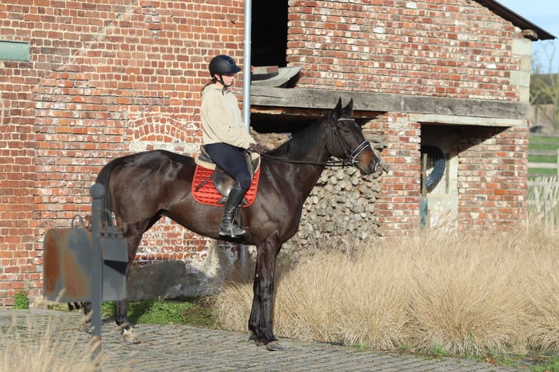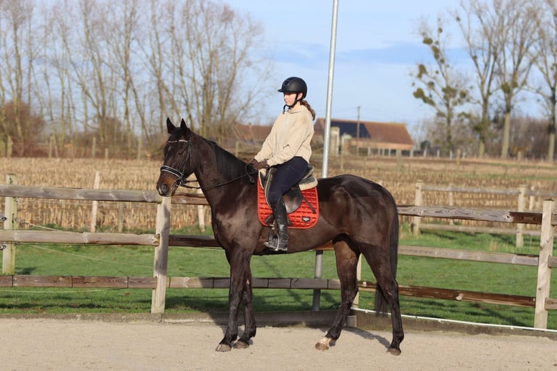 Tiger – mooie zwarte ruin van 4 jaar (±1m66) Tiger is een mooie zwarte ruin van 4 jaar met een stokmaat van ongeveer 1m66. Hij is zeer rustig en geduldig in de omgang en laat zich prettig verzorgen en hanteren. Onder het zadel is Tiger netjes nageeflijk te rijden en toont hij zich als een rustig en betrouwbaar type, zonder gekkigheid. Hij springt graag en makkelijk en loopt een parcours van 80 cm zonder problemen. Ook buiten het terrein is Tiger een fijn paard: op straat is hij niet bang en niet kijkerig. Daarnaast is hij makkelijk op transport. 📞 Meer info? 0032 475 68 22 43 🎥 Video’s beschikbaar – vraag gerust naar onze website.