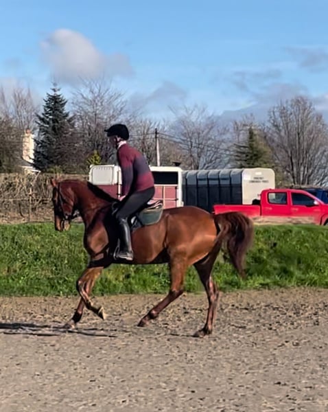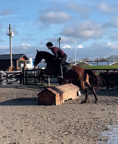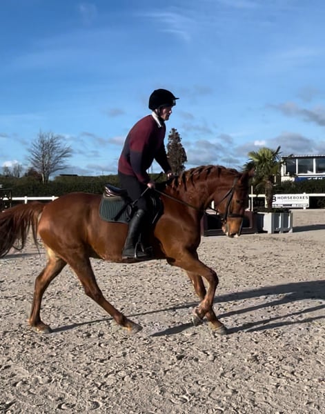 Super lieber Wallach mit keinerlei Unarten. Ist langsm gewachsen und wurde langsam und sorgfaeltig an die VS Arbeit herangebracht. Ist 3 Jagden gegangen, war auf ein paarTurnieren und Schaus. Sehr ehrlich und mutig am Sprung mehrere Halbgeschwister vom selben AA Hengst: Persiflage, laufen in England 3 und 4 Sterne. Weitere Bilder folgen in den naechsten Tagen