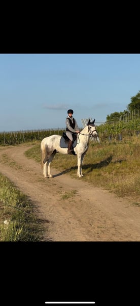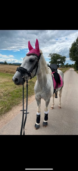 Ich suche für Mocklers Hill George (genannt Georgie) ein liebevolles, pferdegerechtes Zuhause mit erfahrenem, einfühlsamen und geduldigem Reiter. Rasse: Irisches Sportpferd Alter: 7 Jahre Geschlecht: Wallach Stockmaß: ca. 1,55 m Ausbildungsstand: angeritten Georgie ist ein absolut ehrlicher, lernwilliger junger Wallach mit viel Herz und Charme. Er ist in allen drei Grundgangarten angeritten – sehr brav wenn er die nötige Sicherheit bekommt und stets motiviert –, zeigt im Galopp noch Unsicherheiten im Takt und neigt im Trab gelegentlich zum Tölten (meist auf engeren Linien aufgrund von Balance/ Kraft). Er bemüht sich alles richtig zu machen, braucht dabei aber einen sicheren, einfühlsamen Reiter, der ihm mit Ruhe und Klarheit sowie den nötigen Halt gibt. Im Gelände muss er bestärkt und souverän begleitet werden – hat er Vertrauen gefasst, macht er toll mit. Georgie bringt viel Potenzial mit, besonders für die Dressur – bei entsprechender Ausbildung wird er sich sicher sehr gut entwickeln. Auch freispringen meistert er mit Übersicht und Geschick. Er ist barhuf, war bisher in meinem Besitz nie krank und zeigt sich im täglichen Umgang stets freundlich und kooperativ. Ich gebe Georgie schweren Herzens ab, da sich beruflich viel verändert hat und auf Dauer die Zeit fehlt, ihm die Förderung zu geben, die er verdient. Im Preis enthalten: * Trense mit Gebiss * Gamaschen, Hufglocken * Fliegenhauben & -masken * Halfter * 5 Decken (verschiedene Ausführungen) Komplett neuwertiger Sattel (6monate alt) und frisch angepasst kann gegen Aufpreis mit erworben werden. Kontakt: 017680128637 Nur in fördernde Hände mit Erfahrung und Zeit abzugeben. Kein Händlerverkauf. Kein Reitschulbetrieb.