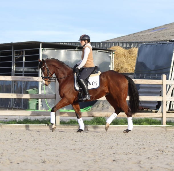 Big Job – zuverlässiger Partner für Sport und Freizeit Big Job ist ein 7-jähriger Wallach mit einer Größe von 1,64 m und einem außergewöhnlich feinen Charakter. Im Umgang ist er ein echter Gentleman: sehr lieb, brav und geduldig, bleibt stundenlang ruhig stehen, gibt problemlos seine Hufe und geht leicht auf den Transport. Ein Pferd, mit dem man jeden Tag mit Freude arbeitet. Unter dem Sattel ist Big Job äußerst angenehm zu reiten. Er läuft leicht, feinfühlig und gut an den Zügel. Er verfügt bereits über Erfahrung in Dressur und Springen auf Turnierniveau. Auf Turnieren springt er 1,00 m, zuhause bewältigt er mühelos Parcours bis 1,15 m. Das macht er einfach und ehrlich: Er weigert sich nicht, schaut bei den Sprüngen nicht weg und ist sehr leicht in Abstand und Tempo zu regulieren. Man führt ihn zum Sprung, und Big Job macht den Rest. Auch Erfahrung im Vielseitigkeitsreiten ist vorhanden. Dank seiner Arbeitsbereitschaft und Zuverlässigkeit eignet sich Big Job sowohl für Anfänger als auch für erfahrene Reiter. Ein Pferd, mit dem man wachsen und gleichzeitig genießen kann. Big Job wurde am 11.12.2025 klinisch untersucht. Wir möchten transparent zwei Punkte erwähnen: - Er hat einen Überbiss, der vom Tierarzt überprüft wurde und keinen Einfluss auf die Fütterung oder das Funktionieren hat. - Seine Hufe zeigen vertikale Riefen, die auf frühere, weniger gute Hufpflege zurückzuführen sind. Diese verlaufen nicht bis in den Kronrand und müssen einfach nachwachsen. Wir verfügen über zahlreiche Dressur- und Springvideos. Gerne stellen wir weitere Informationen auf unserer Webseite bereit oder kontaktieren Sie uns per WhatsApp: +32 475 68 22 43.