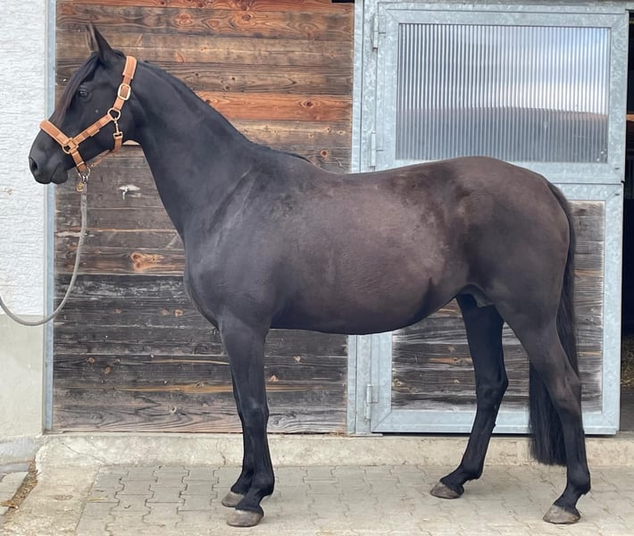 As we are shifting our breeding focus, we are offering our wonderful Kabardian broodmare Bahira for sale. Bahira is a stunning black mare with an excellent temperament, and she is a caring and outstanding mother. Artificial insemination is straightforward, pregnancy is uncomplicated, and all her foalings have been equally smooth. We have three beautiful foals from her. The foals are half-bloods, as we have always bred her with full-blood stallions. She holds an Anglo-Kabardian passport issued by the Bavarian Breeding Association, where she is also registered in Breeding Book 1. Bahira is regularly dewormed, has seen the dentist, and is fully vaccinated. She has been ridden by her previous owner, but with us, she has only been used as a broodmare; she has not been ridden in our program. She has been worked on the longe or from the ground.